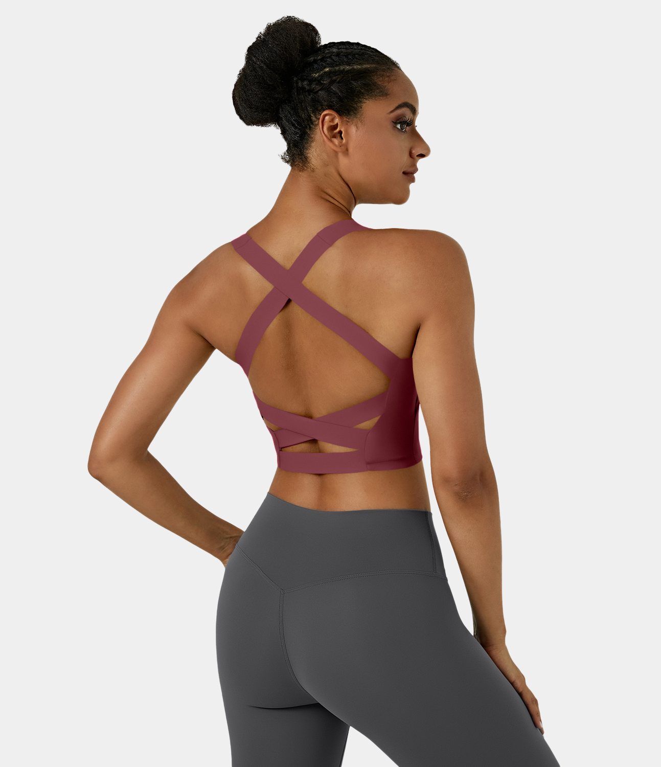 Halara Softlyzeroв„ў Faux Leather Ruched Double Straps Backless Crisscross Foil Print Stretchy Yoga Tank Top Tank Top - Bright Skin Floating White - XL Halara