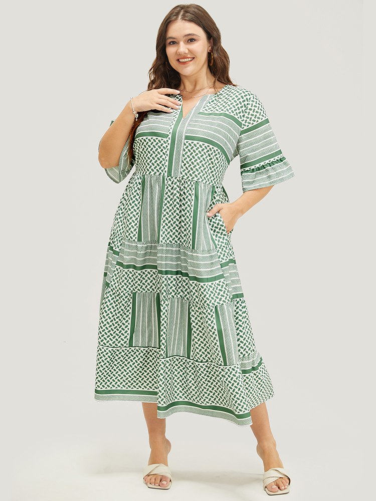 Plus Size Women Dailywear Bohemian Print Pocket Dolman Sleeve Short sleeve V-neck Pocket Vacation Dresses BloomChic BloomChic