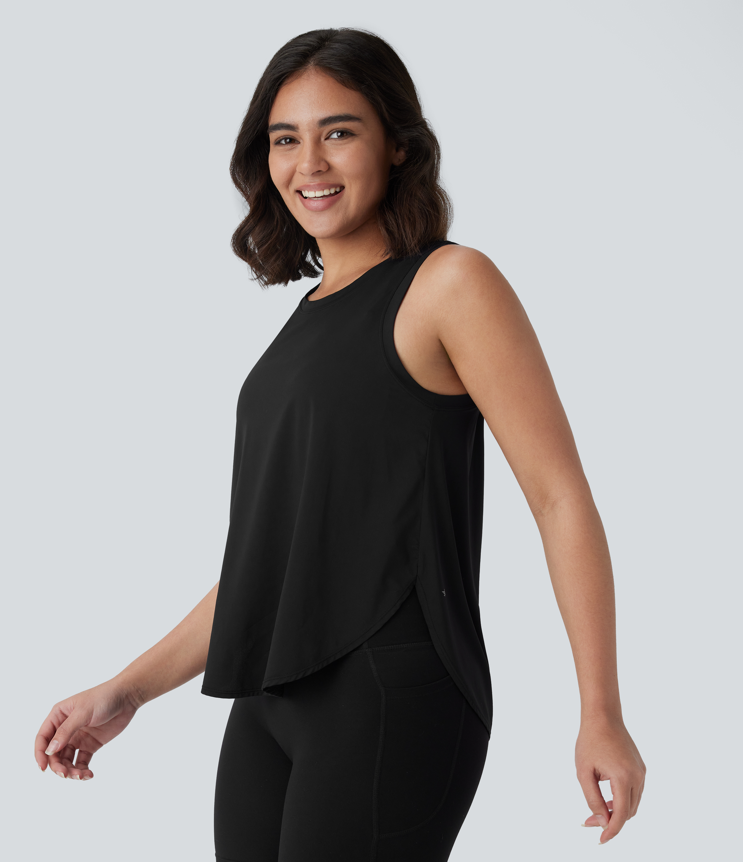 Halara Round Neck Sleeveless Curved Hem Yoga Sports Top - Black - XL Halara