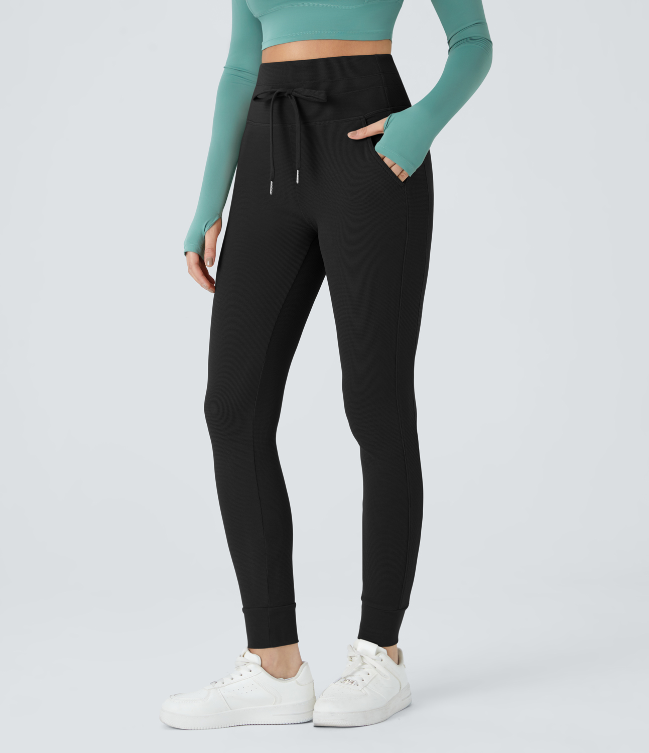 Halara High Waisted Side Pocket Plicated Casual Joggers - Black - L(regular) Halara