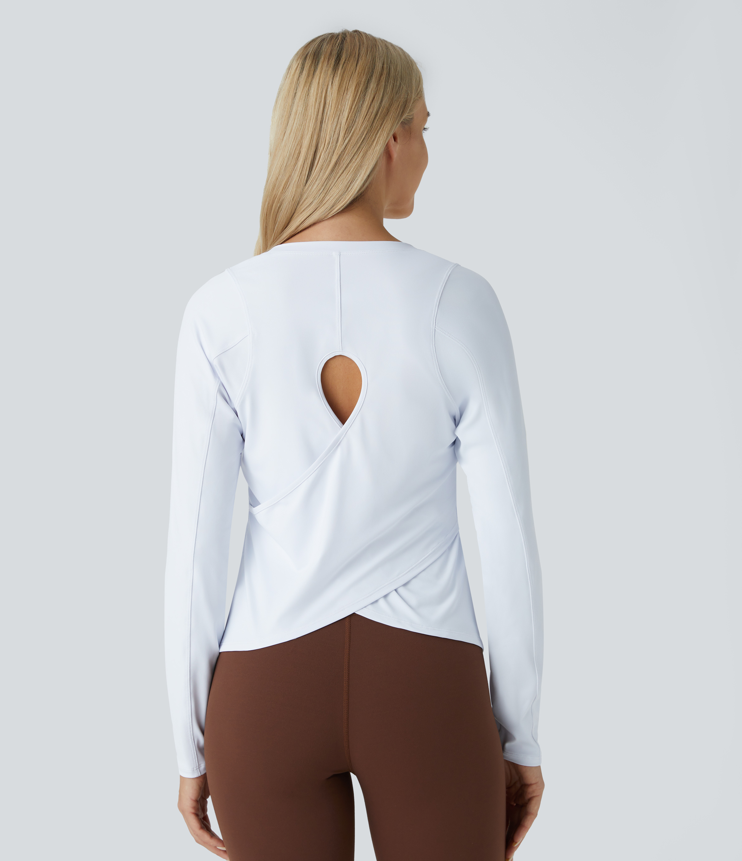 Halara Cut Out Crossover Hem Long Sleeve Yoga Sports Top - White - XL Halara