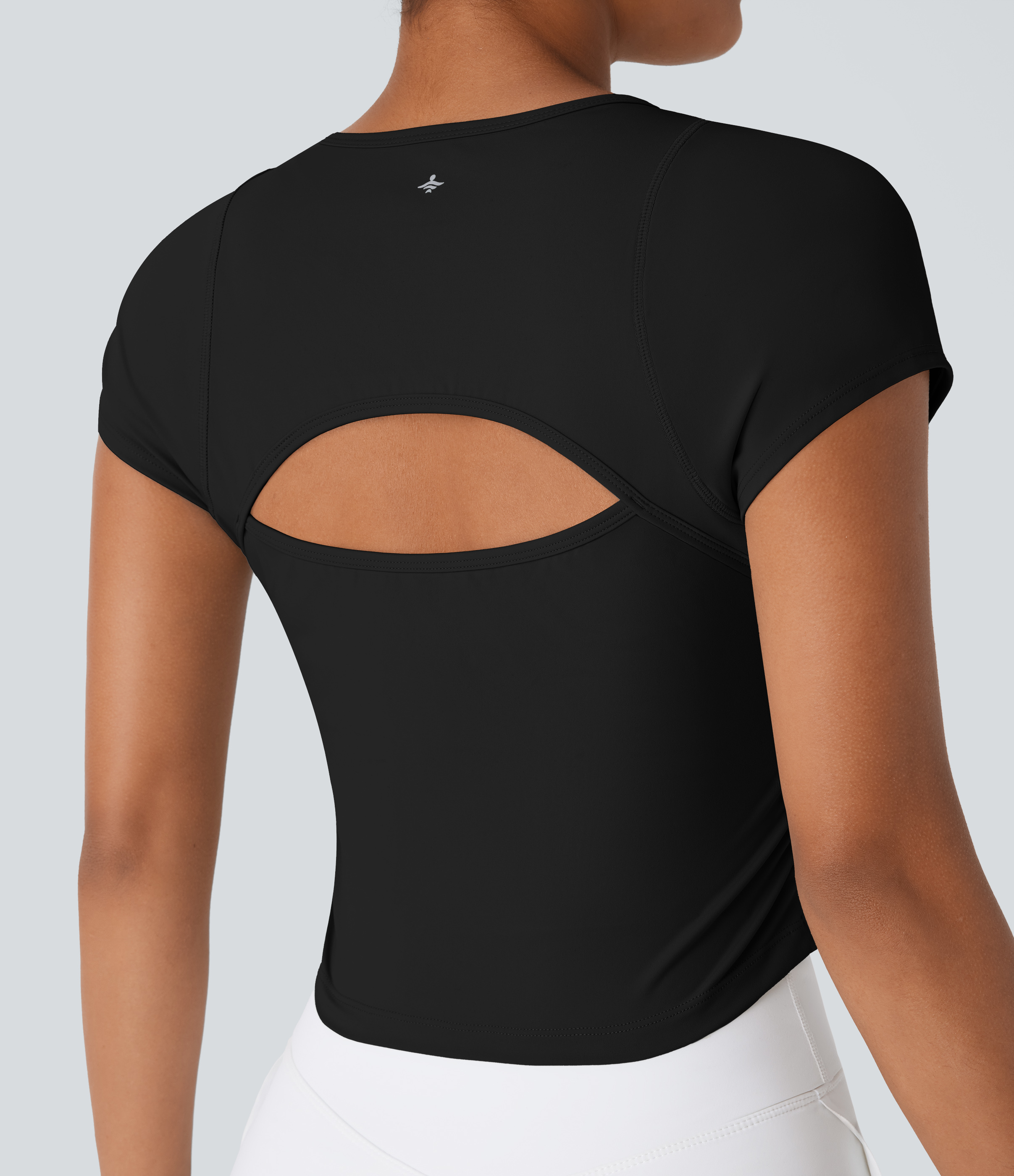 Halara Softlyzeroв„ў Plush Crossover Hem Cropped Yoga Sports Top - Black - S(Long) Halara
