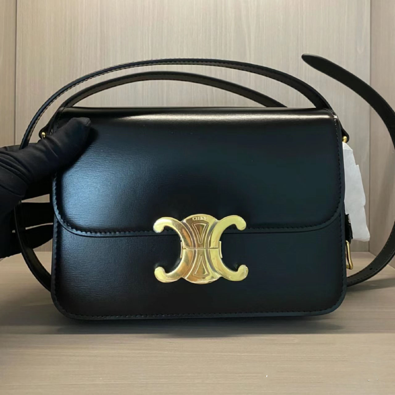 Celine Black Shiny Calfskin Triomphe Claude Chain Shoulder Bag Celine