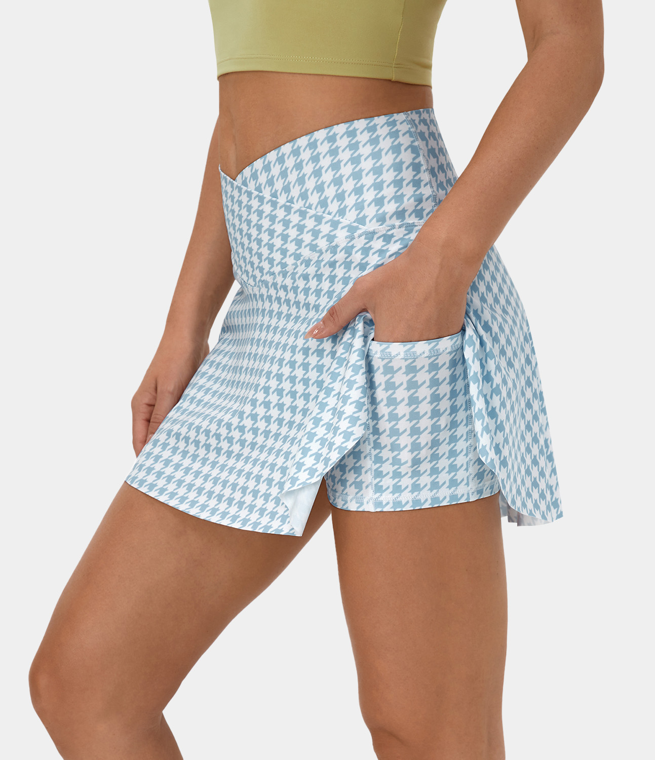 Halara Everyday Crossover Side Pocket 2-in-1 Tennis Skirt-Lucid - Baltic Sea Houndstooth - S midi skirt a line skirt golfing skirt Halara