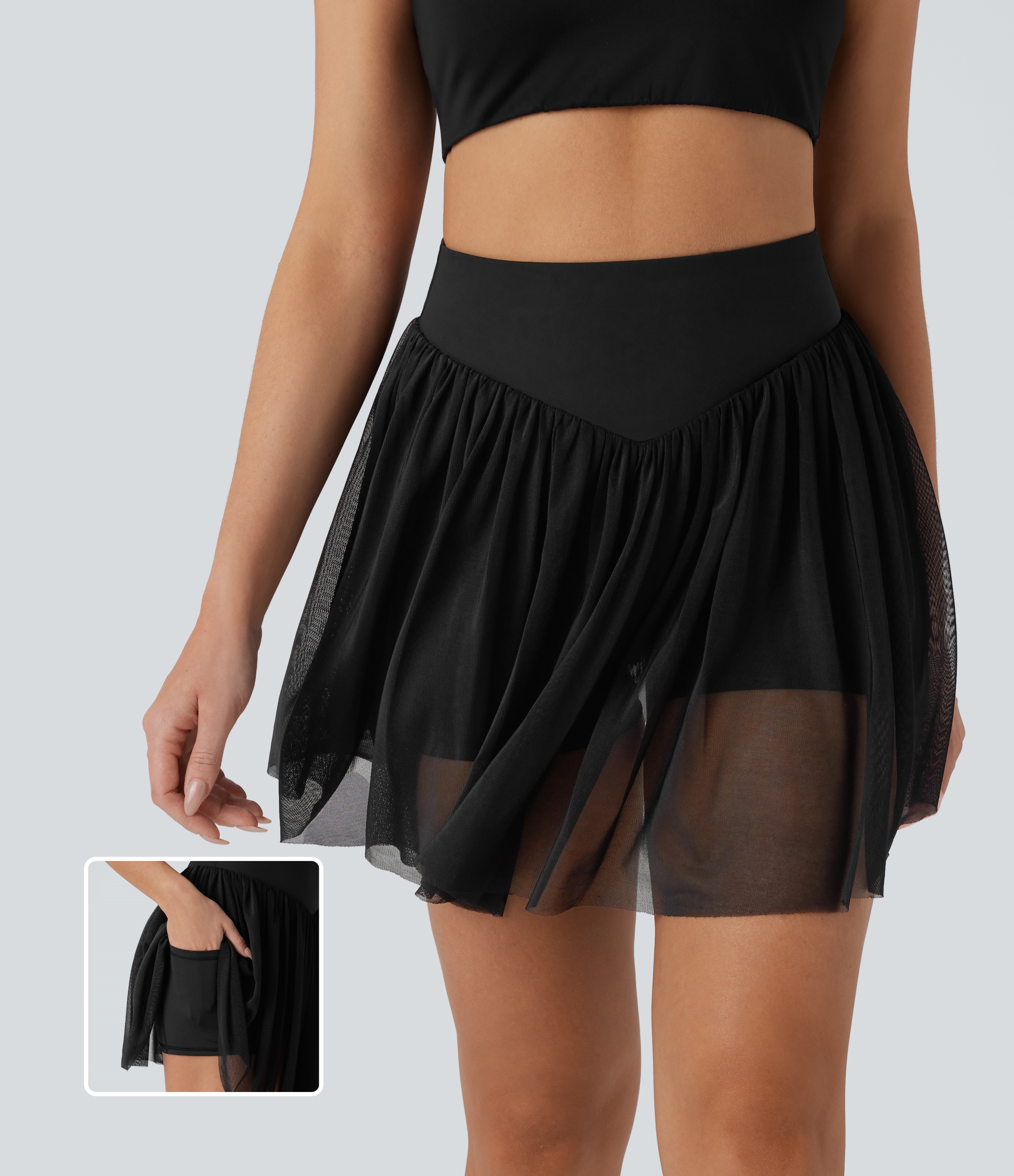 Halara SoCinched High Waisted Tummy Control 2-in-1 Side Pocket Mesh Mini Pickleball Skirt - Carbon Black - S(regular) Halara