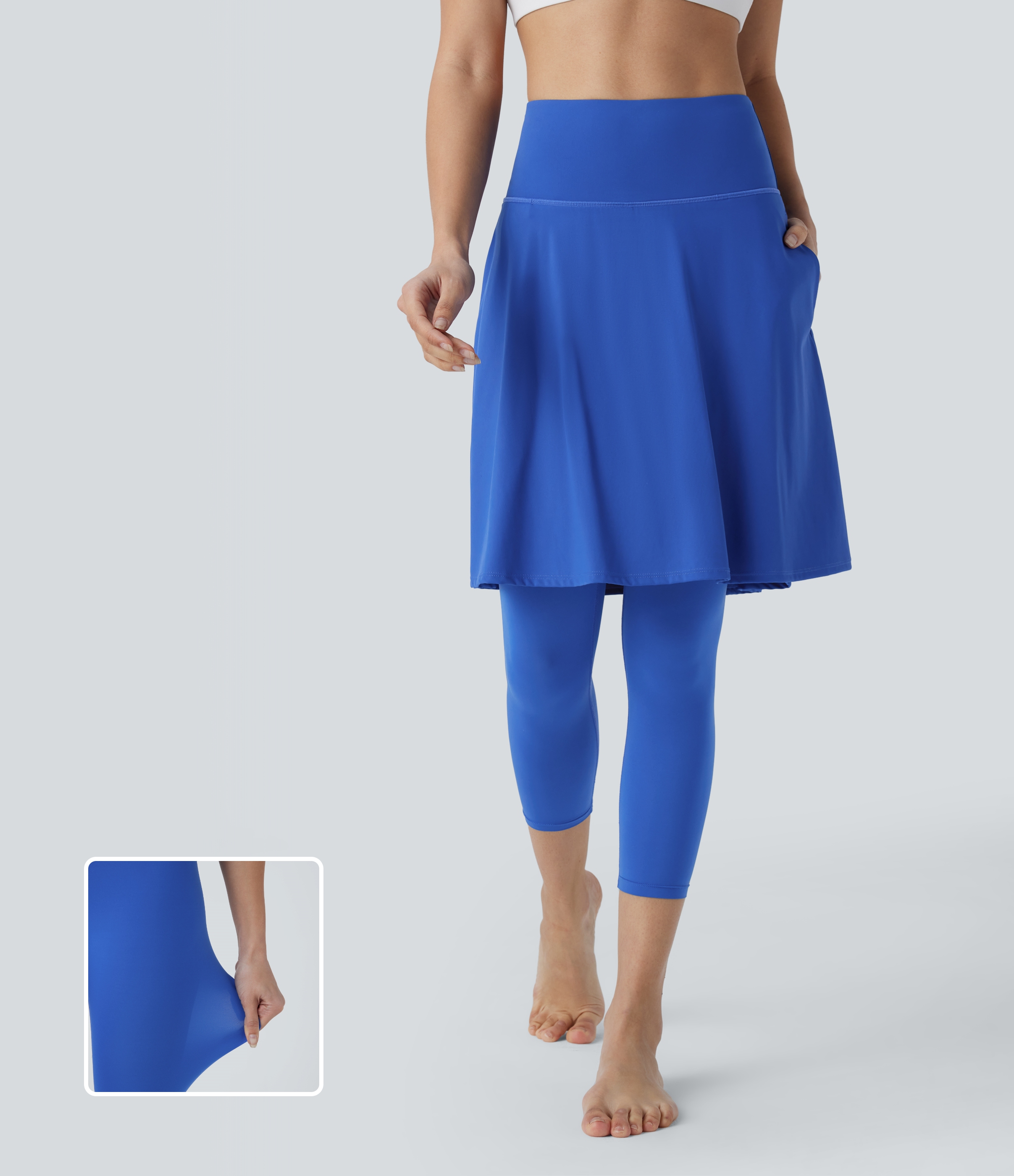 Halara Softlyzeroв„ў Airy High Waisted Side Pocket 2-in-1 Cool Touch Flare Yoga Skirt with Capri Leggings - Surf the Web - XS(regular) Halara