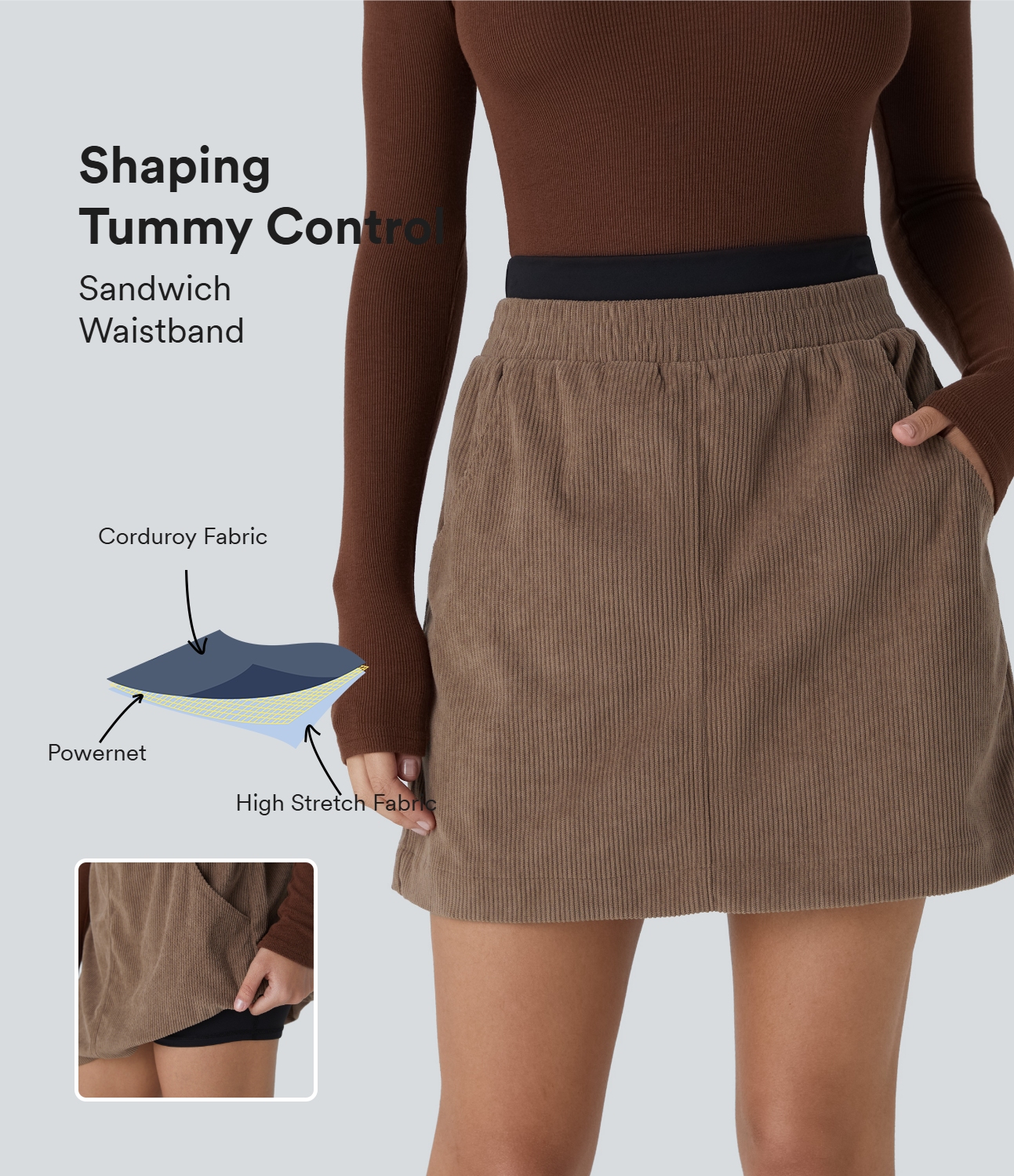Halara High Waisted Invisible Zipper 2-in-1 A Line Mini Corduroy Casual Skirt - Pomegranate - XL(regular) Halara
