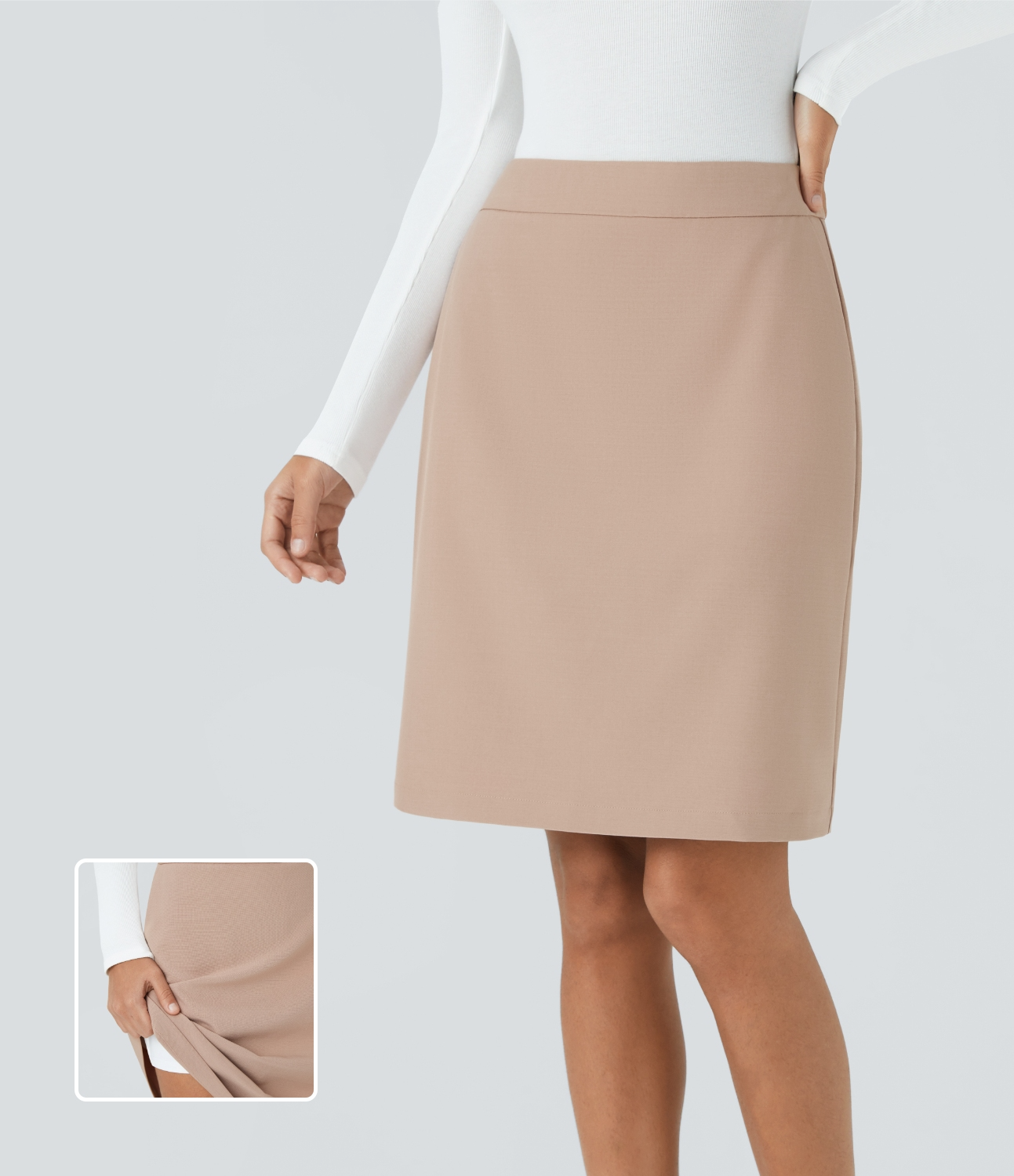 Halara High Waisted Invisible Zipper Side Pocket 2-in-1 Split Hem Straight Work Skirt - Earthy Khaki - XS(regular) Halara