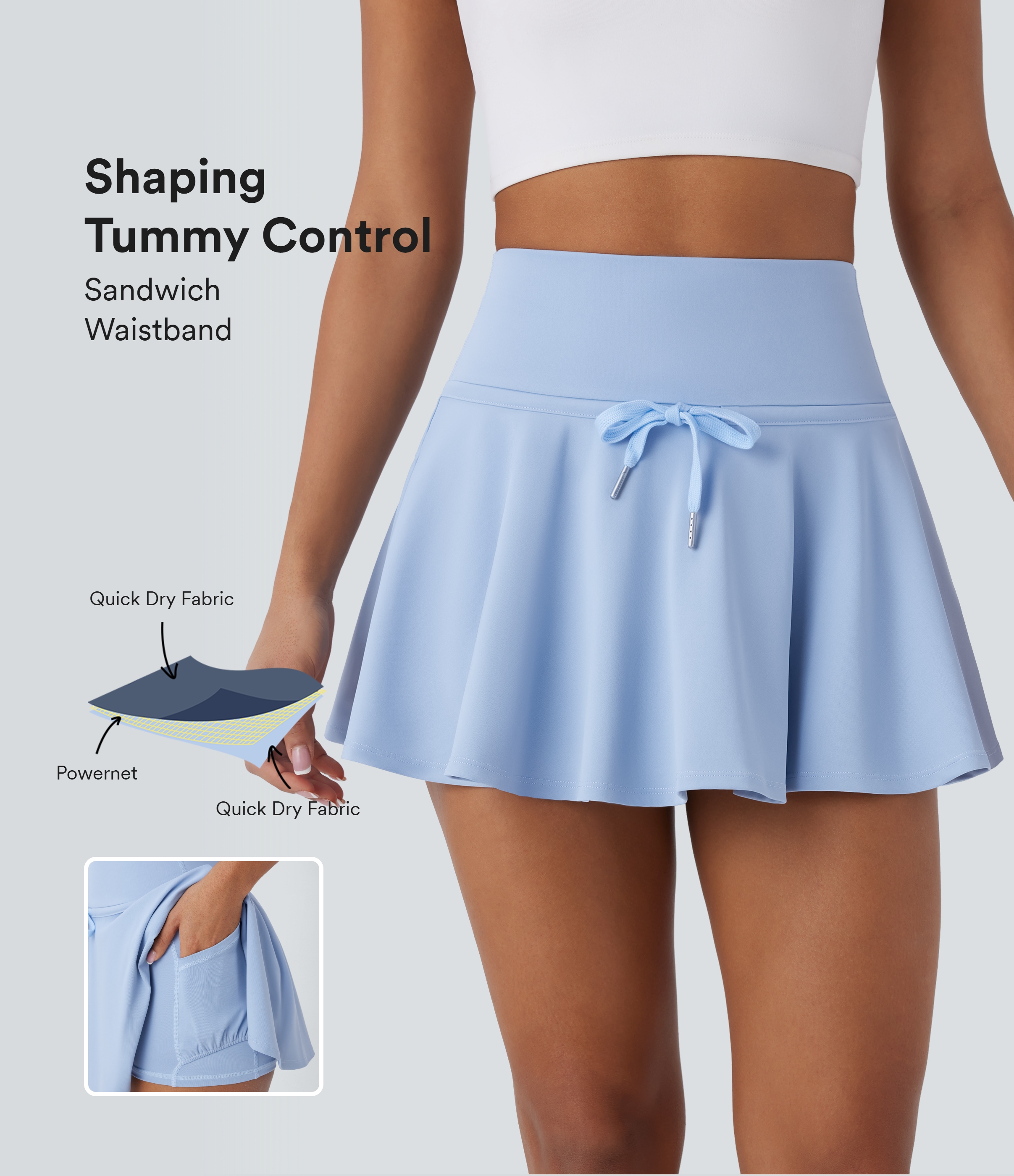 Halara Breezefulв„ў High Waisted Tie Side 2-in-1 Side Pocket Flowy Micro Mini Flare Quick Dry Casual Skirt - Ghost Gray - XL(regular) Halara