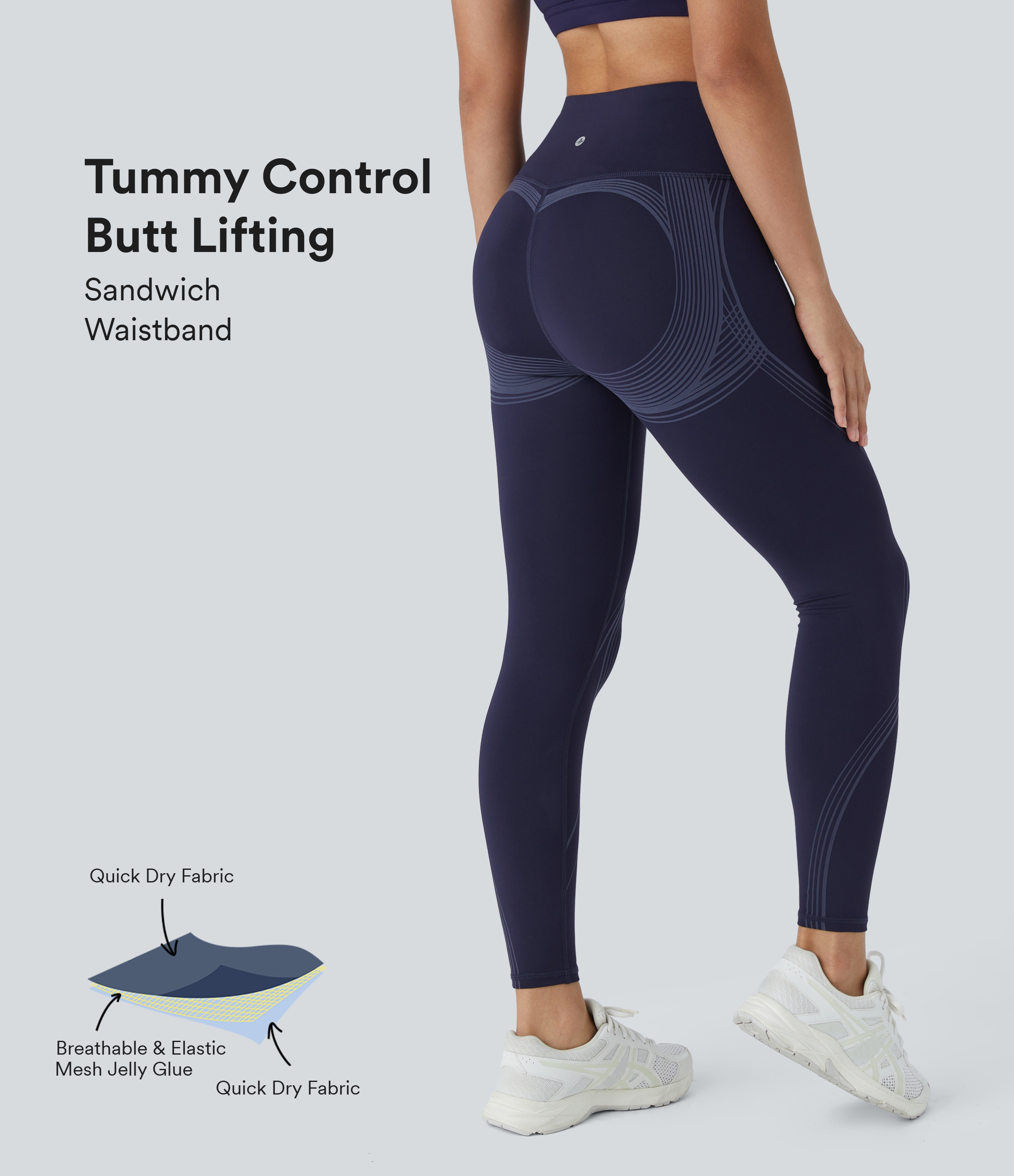 Halara High Waisted Crossover Side Pocket Leopard Print 7/8 Yoga Leggings - Dark Blue Leopard Print - XS(7/8) gym leggings Halara