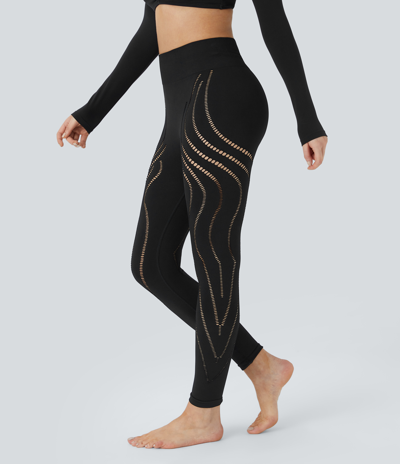 Halara Seamless Flow High Waisted Butt Lifting Snakeskin Print Yoga 7/8 Leggings - Jet Black Print - M(7/8) gym leggings Halara