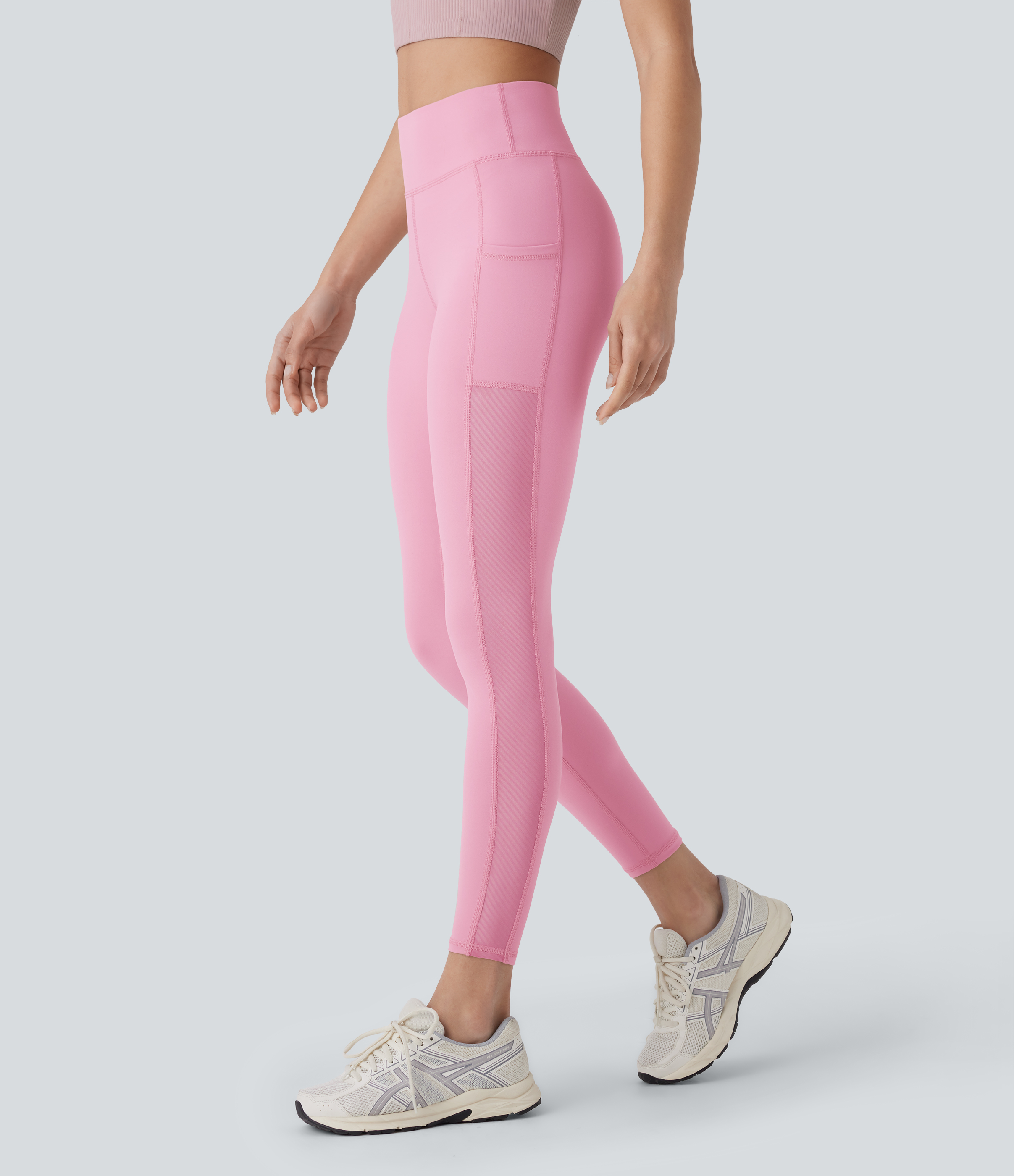 Halara Softlyzeroв„ў Plush High Waisted Side Pocket Contrast Mesh 7/8 Yoga Leggings - Lemonade Pink - M(7/8) gym leggings Halara