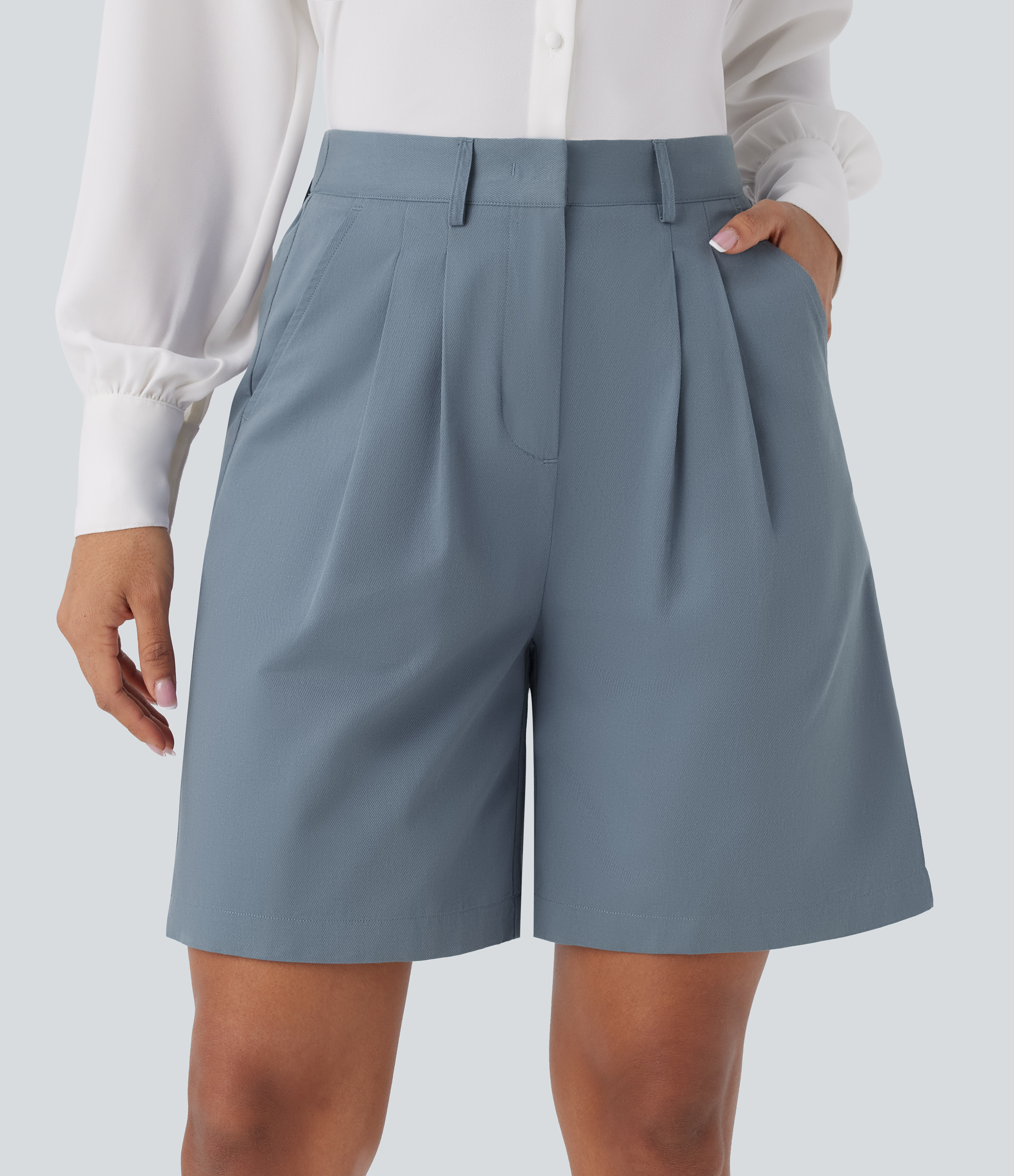 Halara High Waisted Plicated Side Pocket Wide Leg Work Shorts - Deep Aquamarine - XL Halara