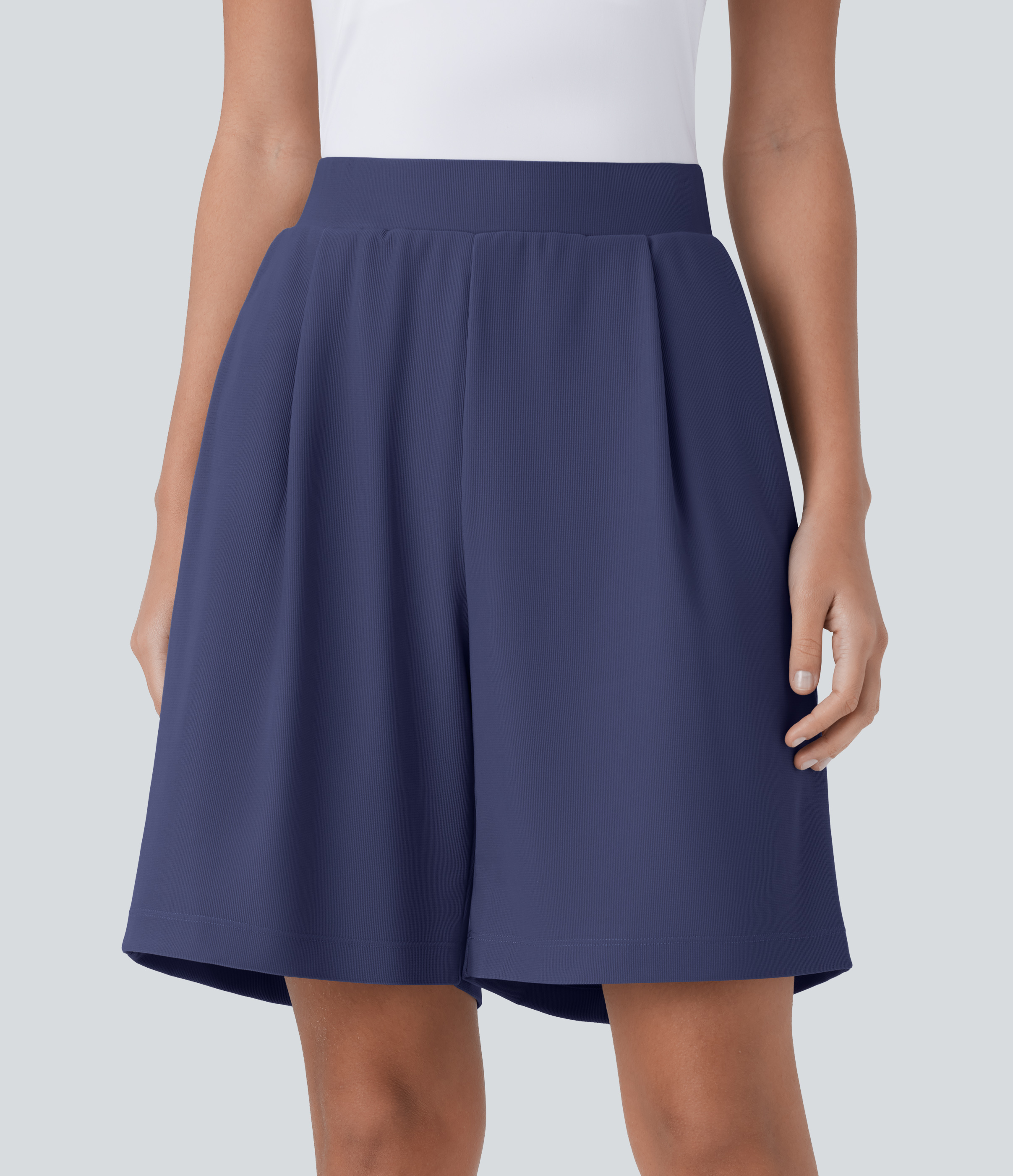 Halara High Waisted Plicated Side Pocket Wide Leg Work Shorts - Midnight Blue - L Halara