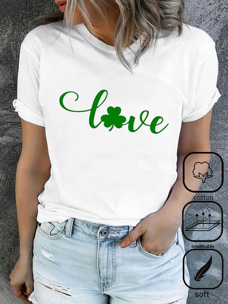 Women`s Shamrock Short Sleeve Tee T-shirt Crew Neck Casual Summer Top T-Shirts JustFashionNow