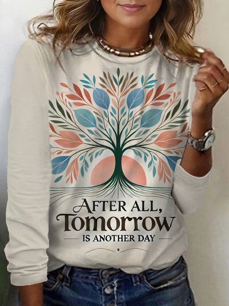 Women`s Long Sleeve Tee T-shirt Spring/Fall Abstract Crew Neck Casual Top T-Shirts JustFashionNow