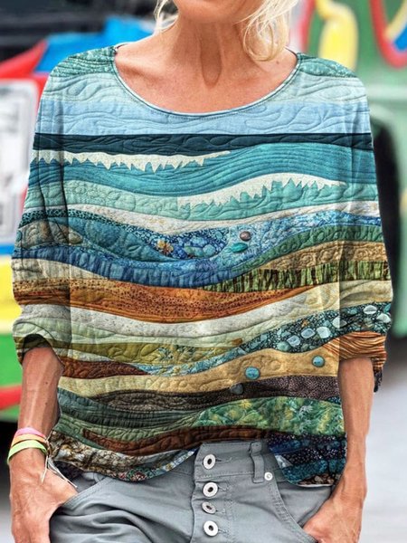 Casual 3D Flower Printing Regular Fit Crew Neck Long Sleeve Shirt T-Shirts JustFashionNow