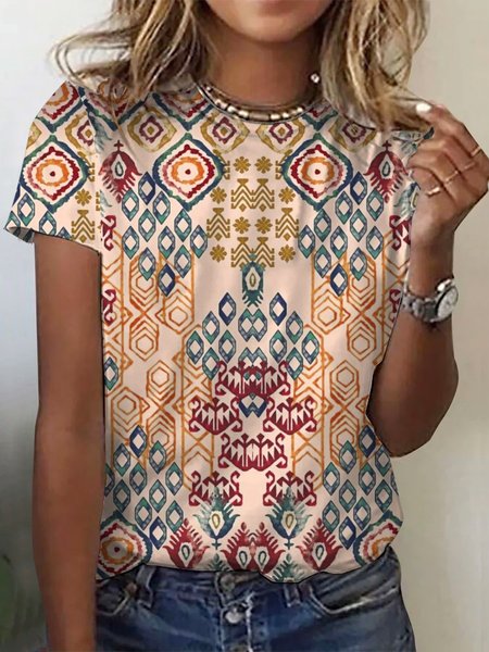 JFN V Neck Casual Ethnic Autumn Daily Three Quarter T-Shirt T-Shirts JustFashionNow