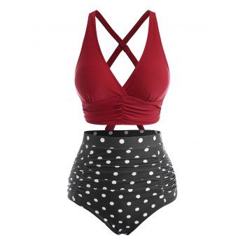 Tummy Control Tankini Swimsuit Vintage Swimwear Polka Dot Ruched Crisscross Summer Beach Bathing Suit Dresslily