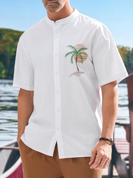Men`s Tropical Coconut Tree Print Hawaiian Summer Casual Beach Vacation Button Short Sleeve Shirt Zaful