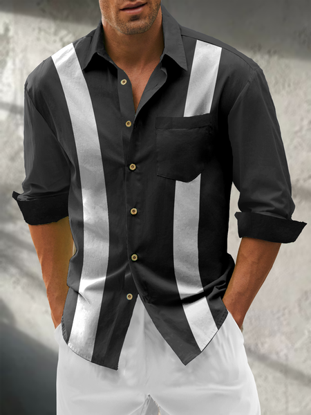 Striped Contrast Color Long Sleeve Shirt Casual Style Lapel Collar Top LONG SLEEVE SHIRTS Hawalili