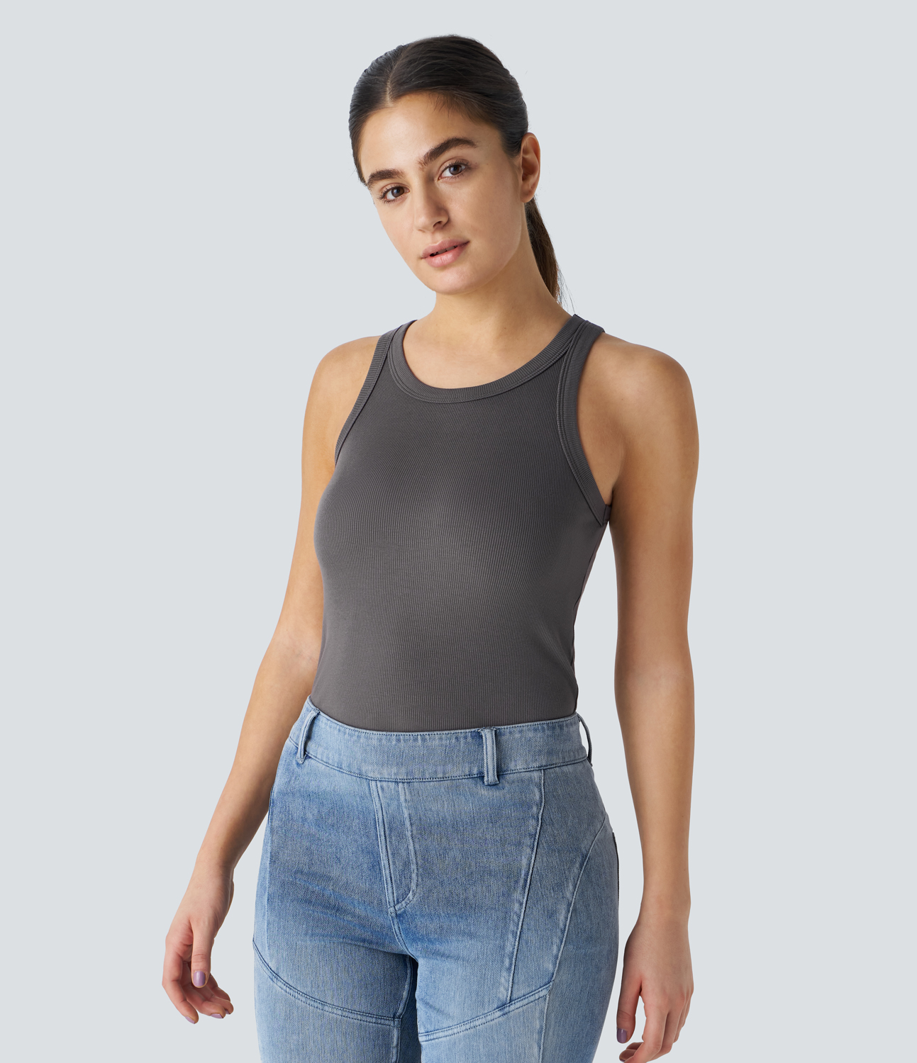 Plus Size Heather Plicated Detail Square Neck Tank Top Women Indigo Casual Non U-neck Everyday Tank Tops Camis BloomChic 10/M BloomChic