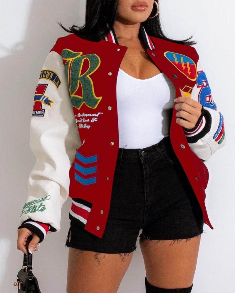 Letter Pattern Graphic Print Long Sleeve Baseball Jacket BelleWholesale