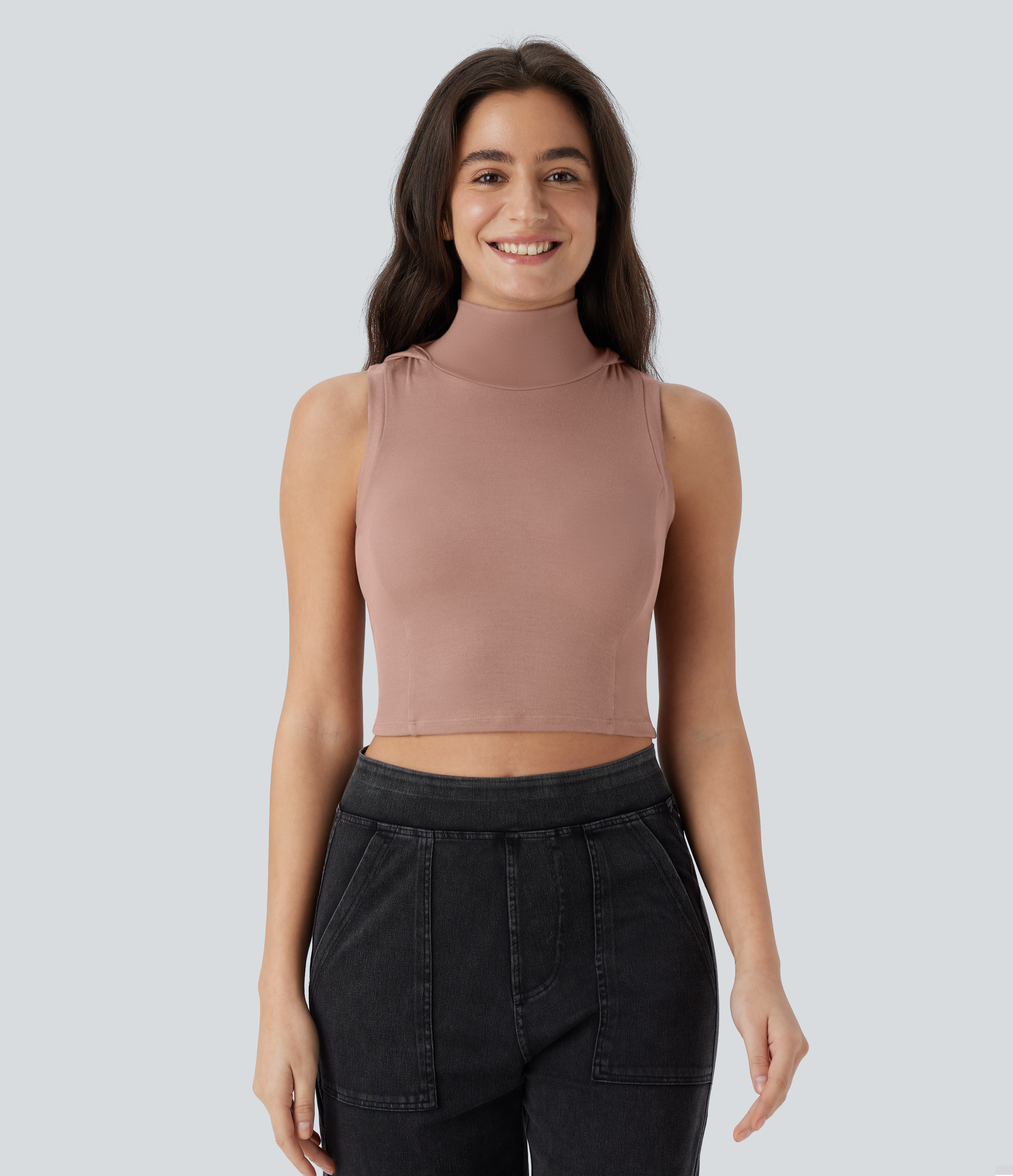 Plus Size Colorblock Contrast Frill Trim Gathered Tank Top Women Burgundy Casual Contrast Mock Neck Everyday Tank Tops Camis BloomChic 28/5X BloomChic