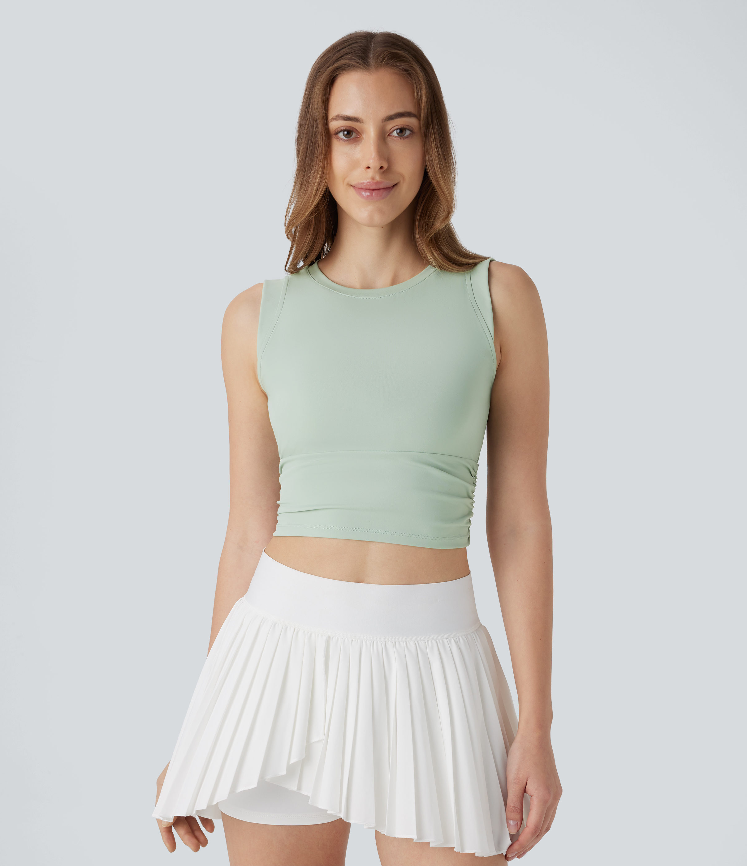 Halara Ribbed Round Neck Basic Casual Tank Top Tank Top - Dark Verdant Green - XS golf tops halter top tunic tops sleeveless tops Halara