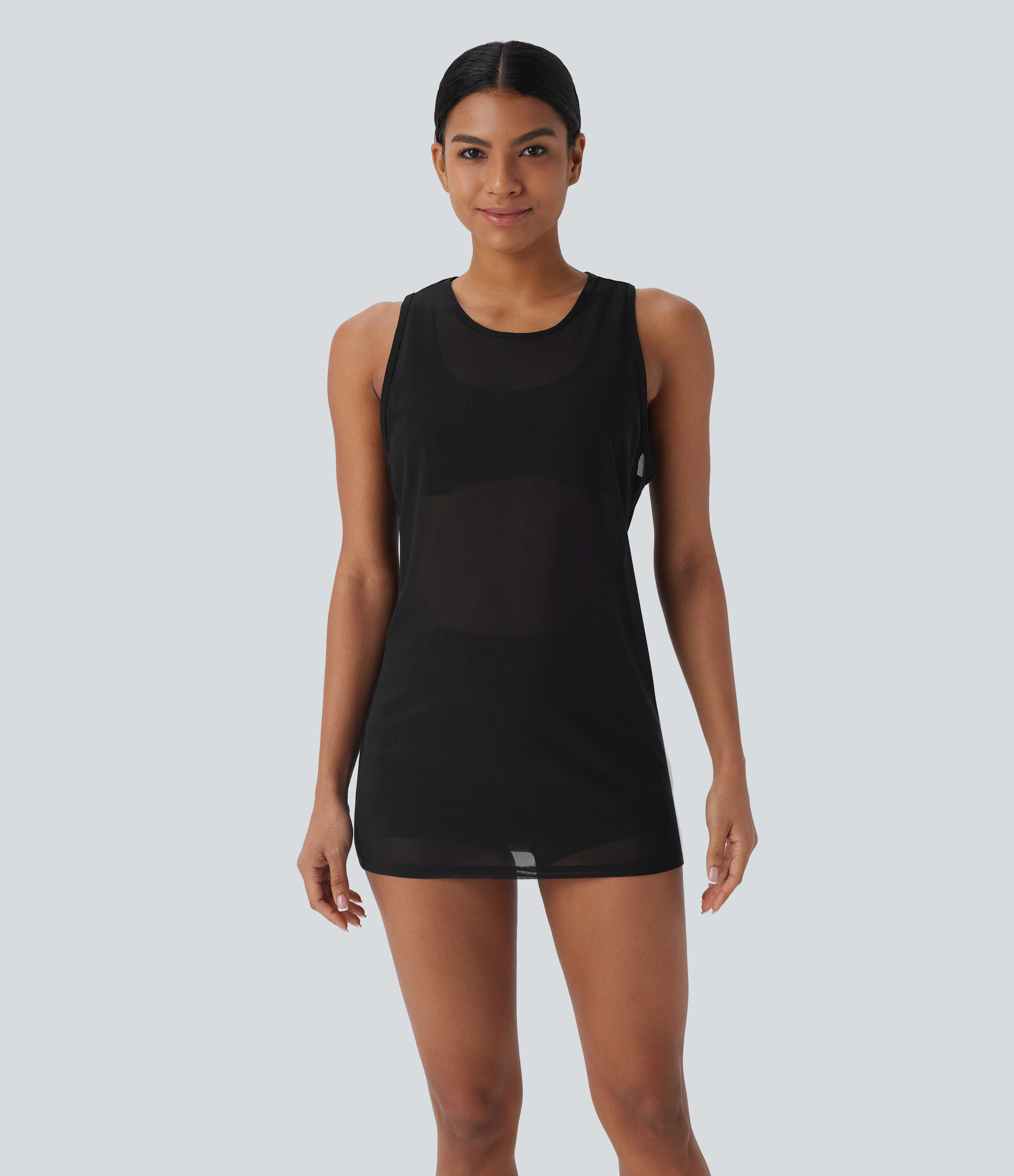 Halara Split Tie Back Tank Top-No Bra Tank Top - Sunday Best - Sky Blue - L golf tops halter top tunic tops sleeveless tops backless top Halara