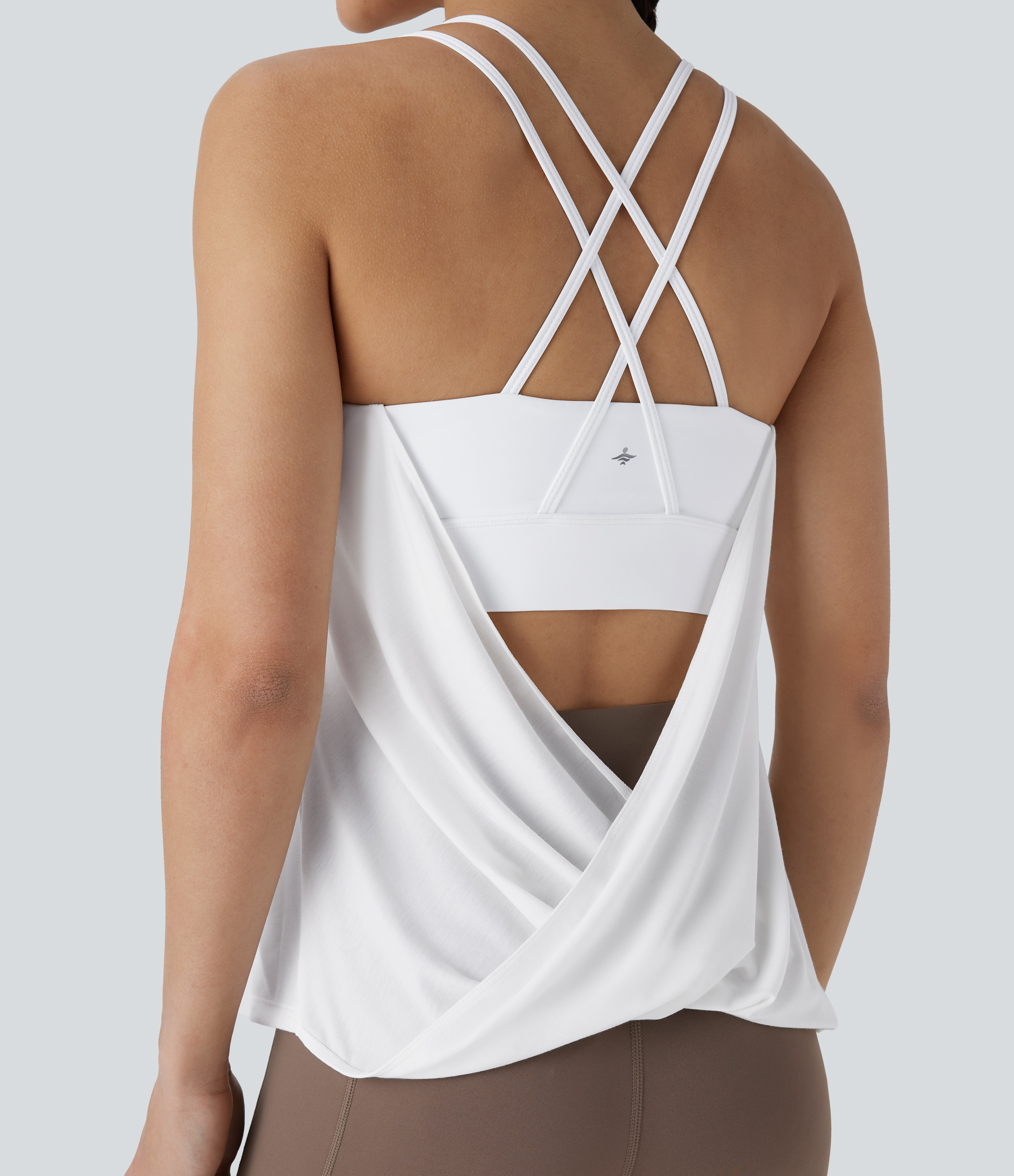 Halara Crisscross Backless Cropped Yoga Tank Top Tank Top - Lagerstroemia Powder - XL golf tops halter top tunic tops sleeveless tops Halara