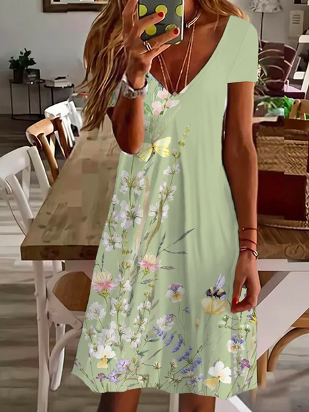 Casual Crew Neck Floral Loose Dress Casual Dresses JustFashionNow