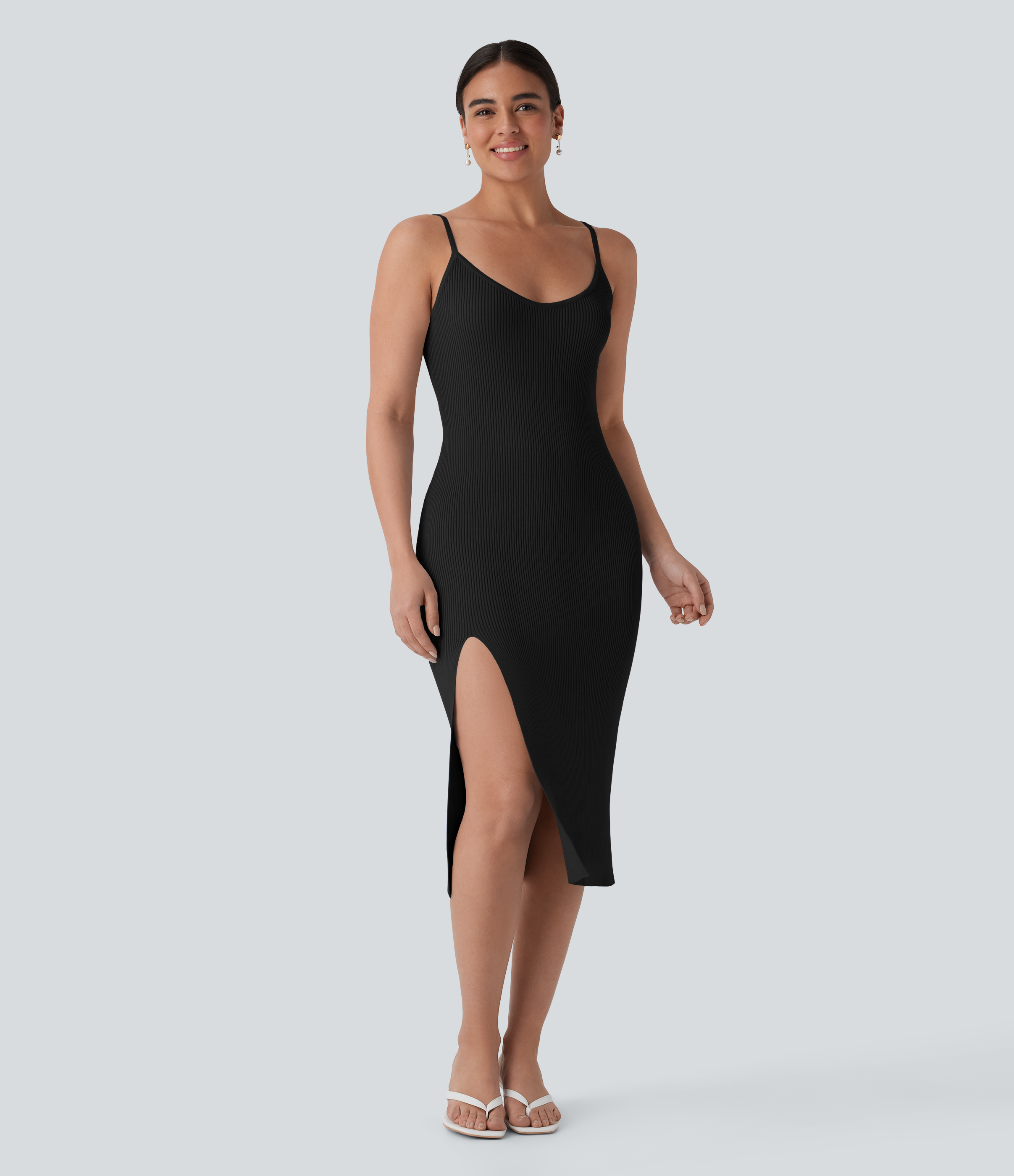 Halara Backless Bodycon Split Midi Resort Slip Sweater Dress - Black - S Halara