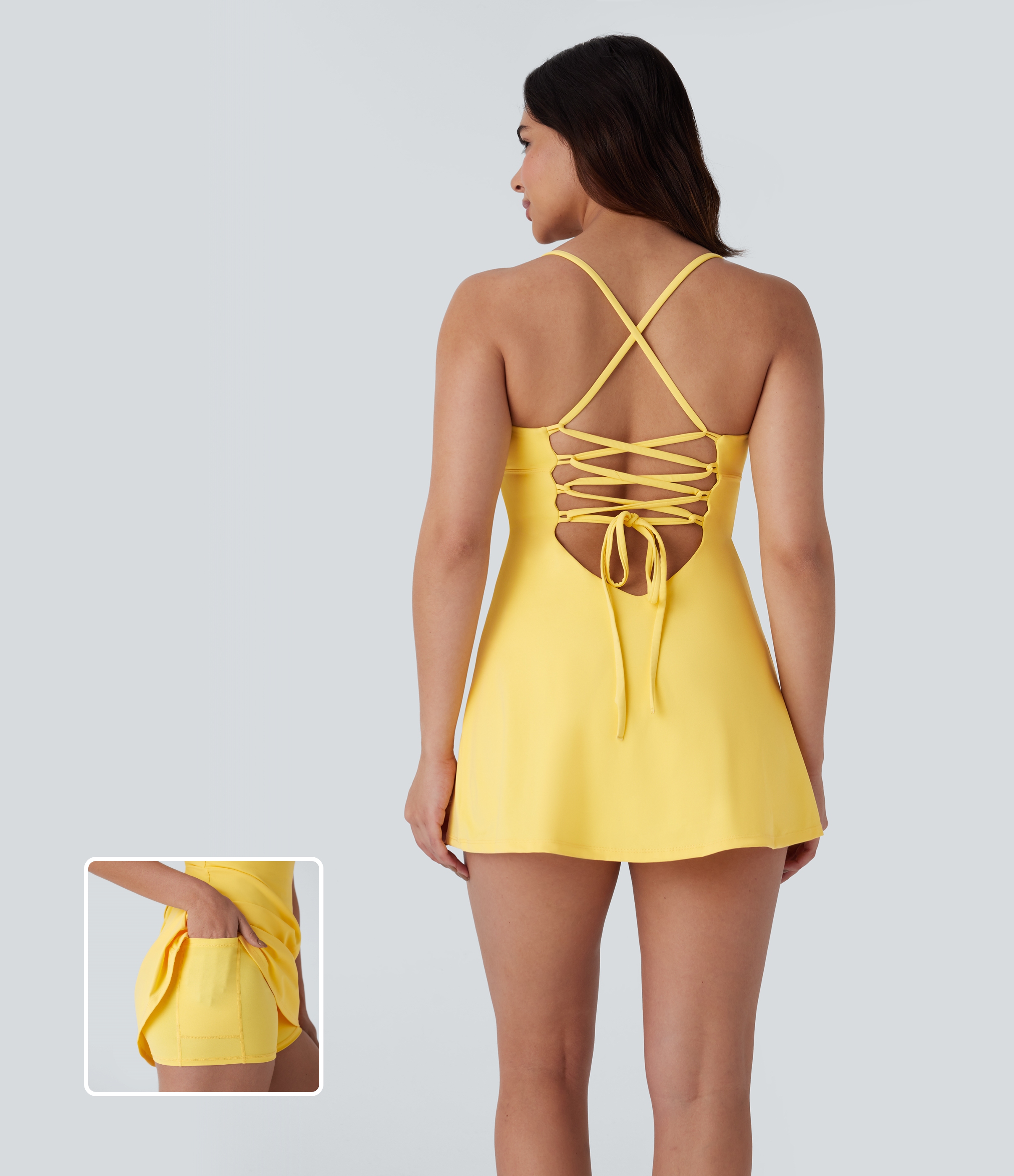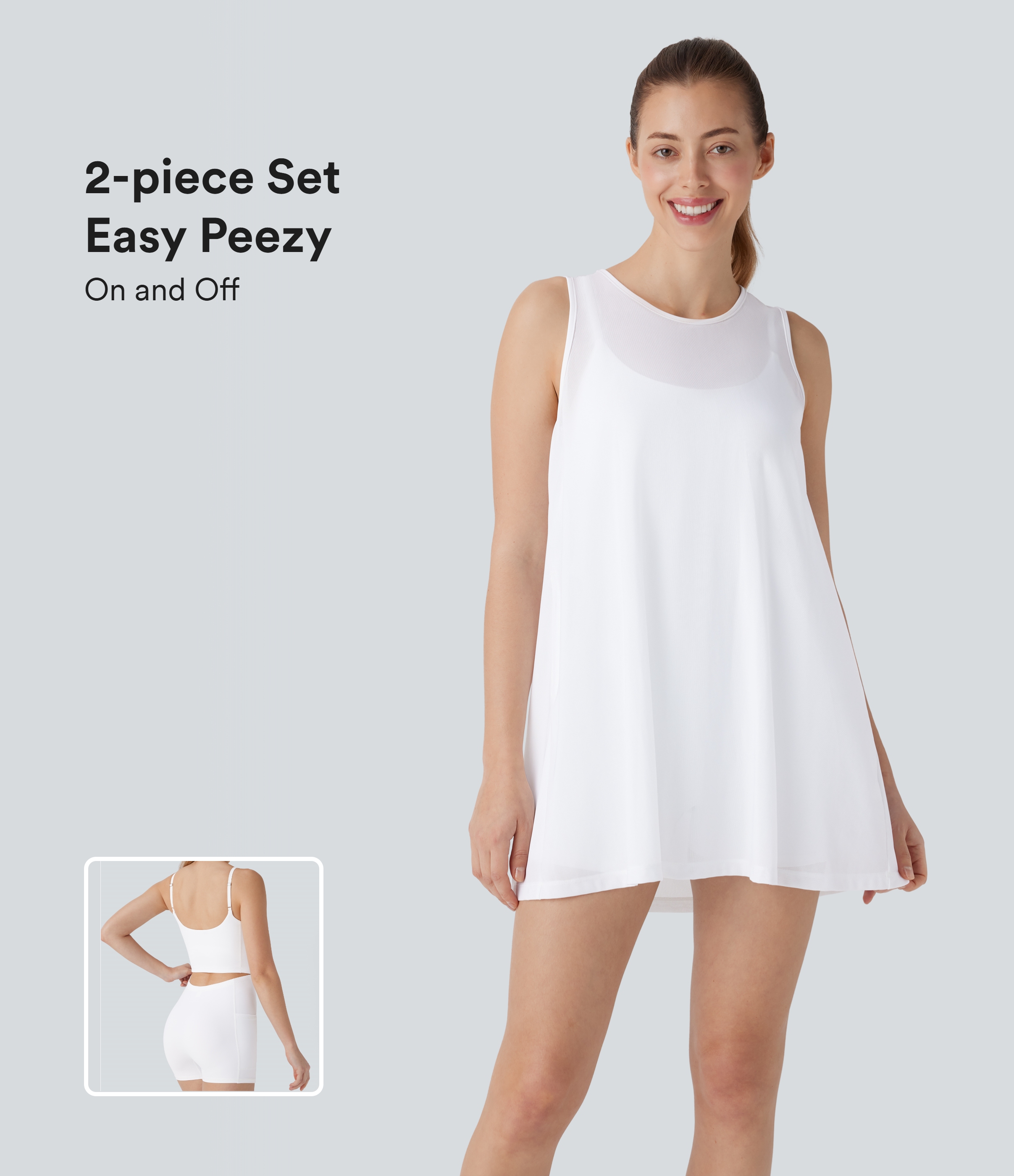 Halara U Neck Backless Racerback Side Pocket High Low Curved Hem Mini Resort Dress Casual Dress - Darl Gray Floral Yarn - XL slip dress Halara