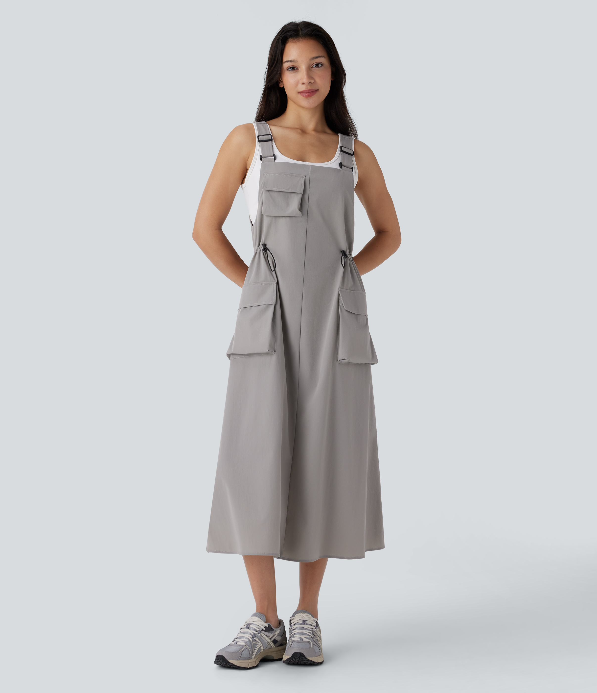 Halara Mid Rise Multiple Pockets Side Draped Maxi Casual Lantern Skirt - Withered Green - L(regular) Halara