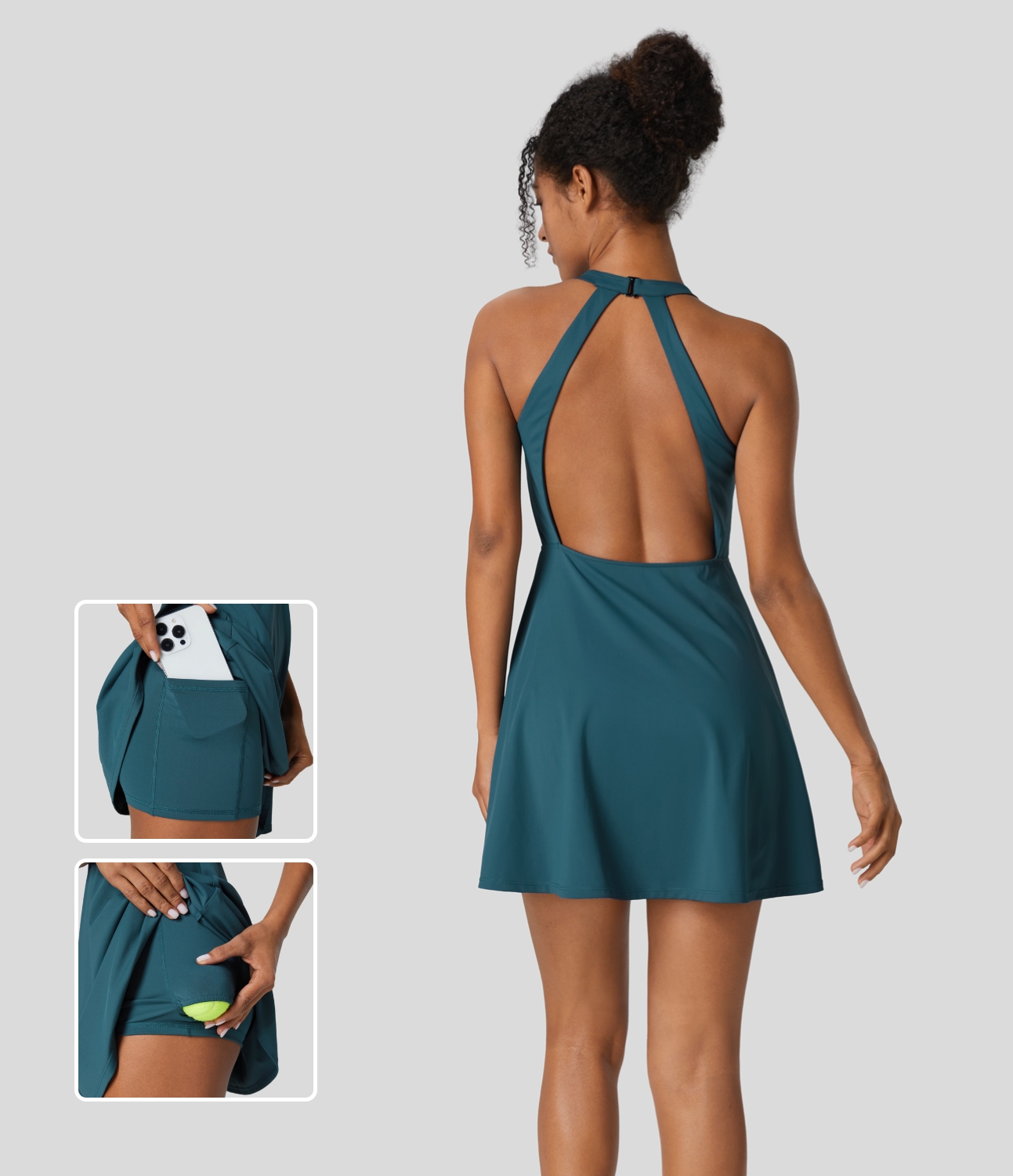 Halara Mid Rise 2-in-1 Side Pocket Button A Line Mini Golf Skirt-Golf Tee Pocket - Midnight Blue - L(regular) midi skirt a line skirt Halara