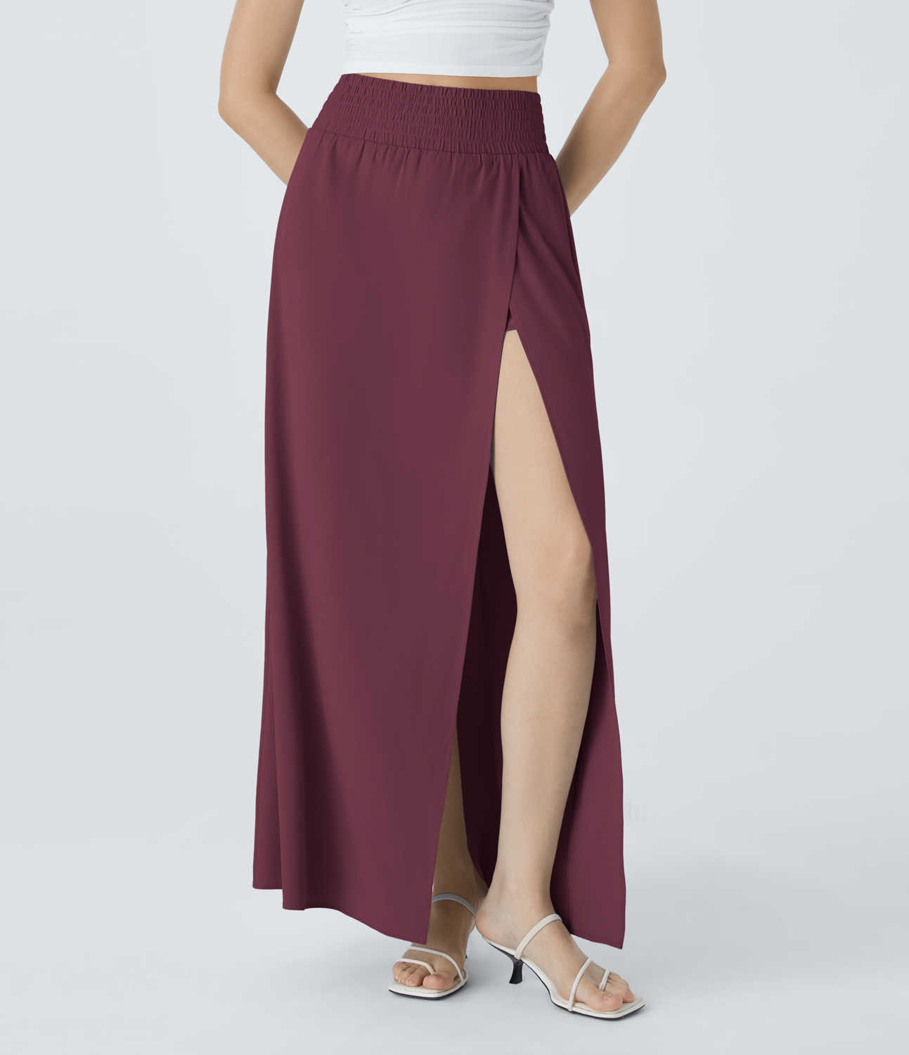 Halara Breezefulв„ў High Waisted Split 2-in-1 Side Pocket Flowy Maxi Quick Dry Casual Skirt - Amaranth - M(regular) Halara