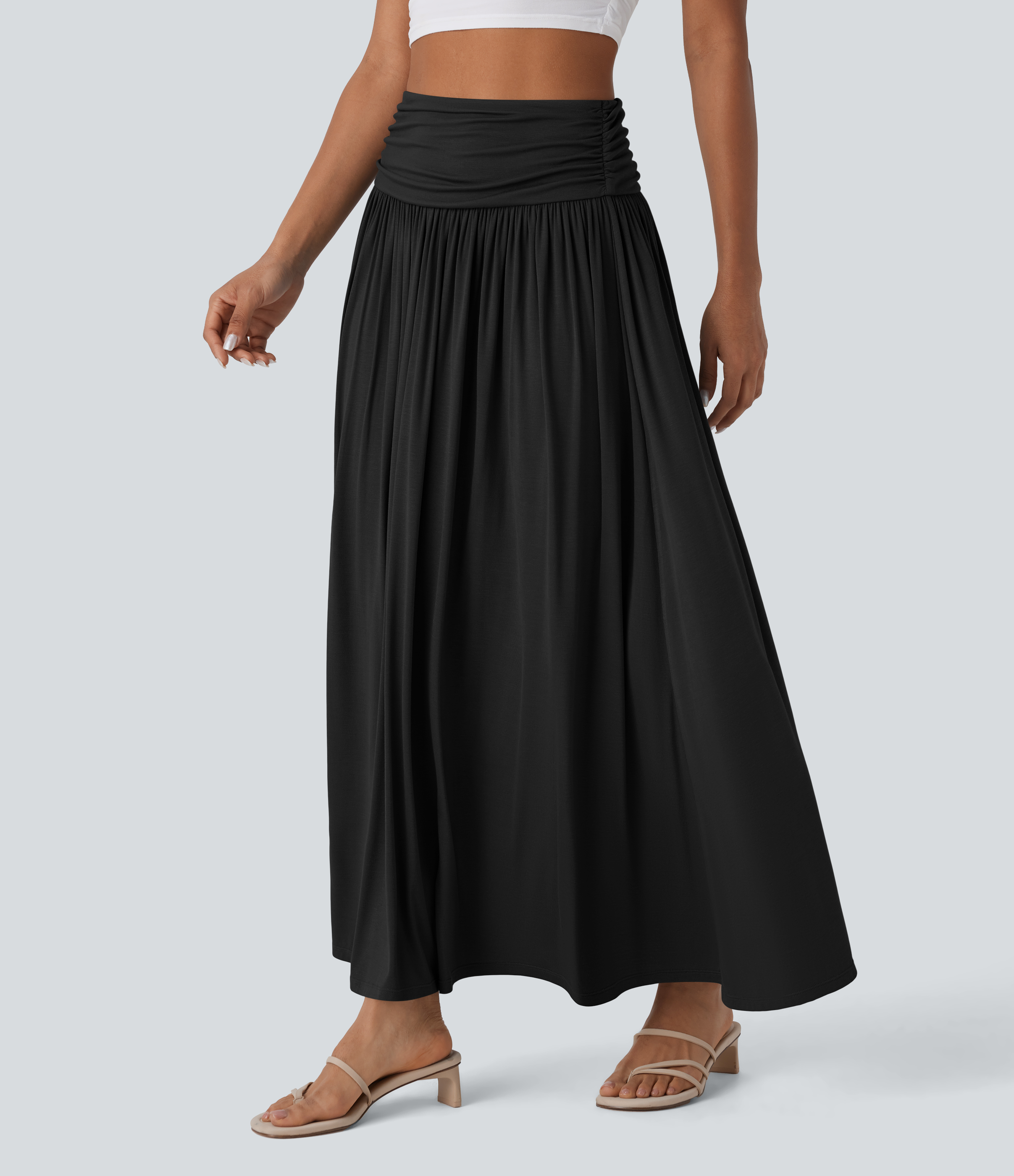 Halara High Waisted Ruched Flowy Maxi Casual Skirt - Black - M(regular) Halara