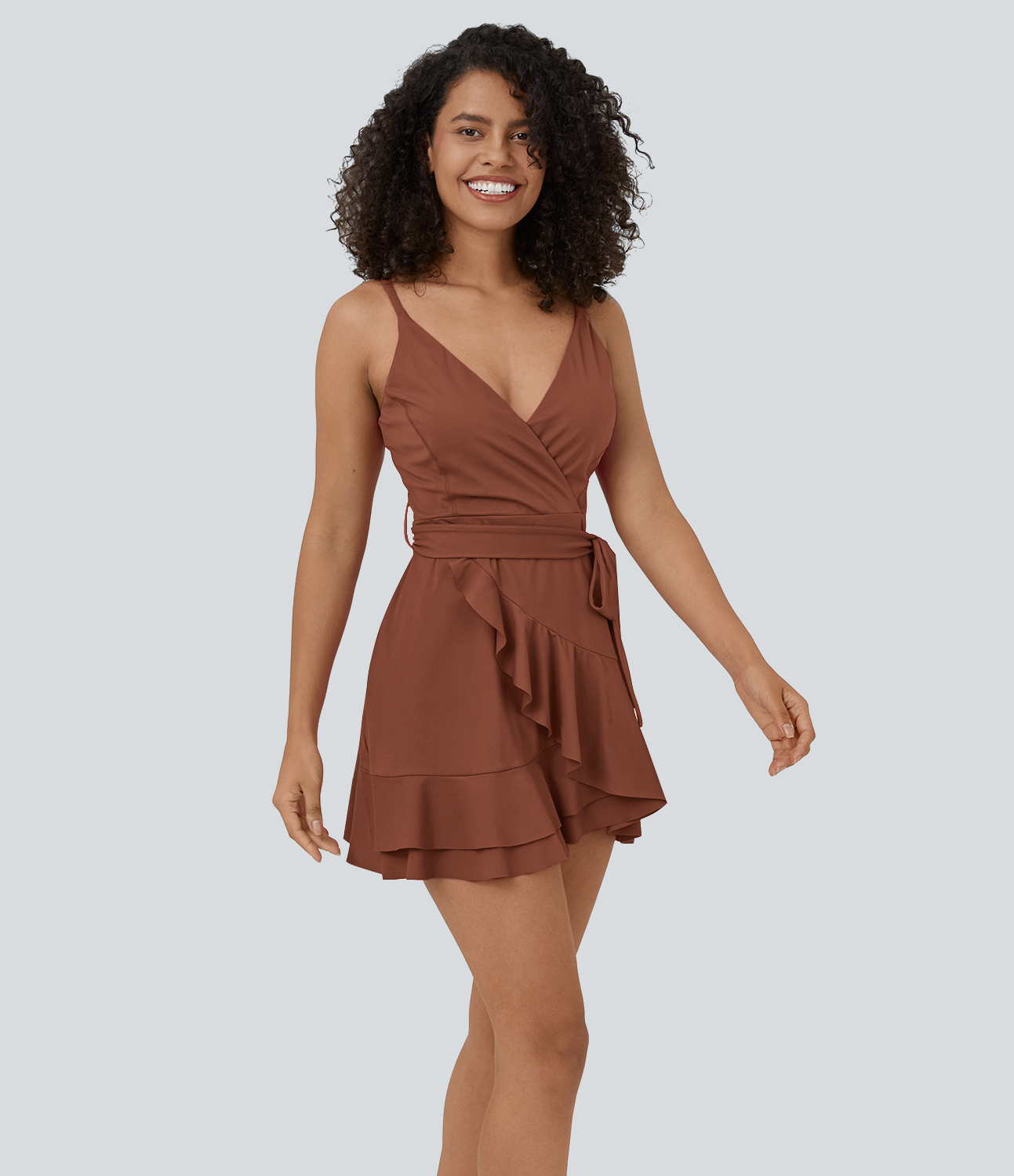 Halara Backless Twisted Cut Out Flare Mini Dance Active Dress Workout Dress - Brandy Brown - M Halara