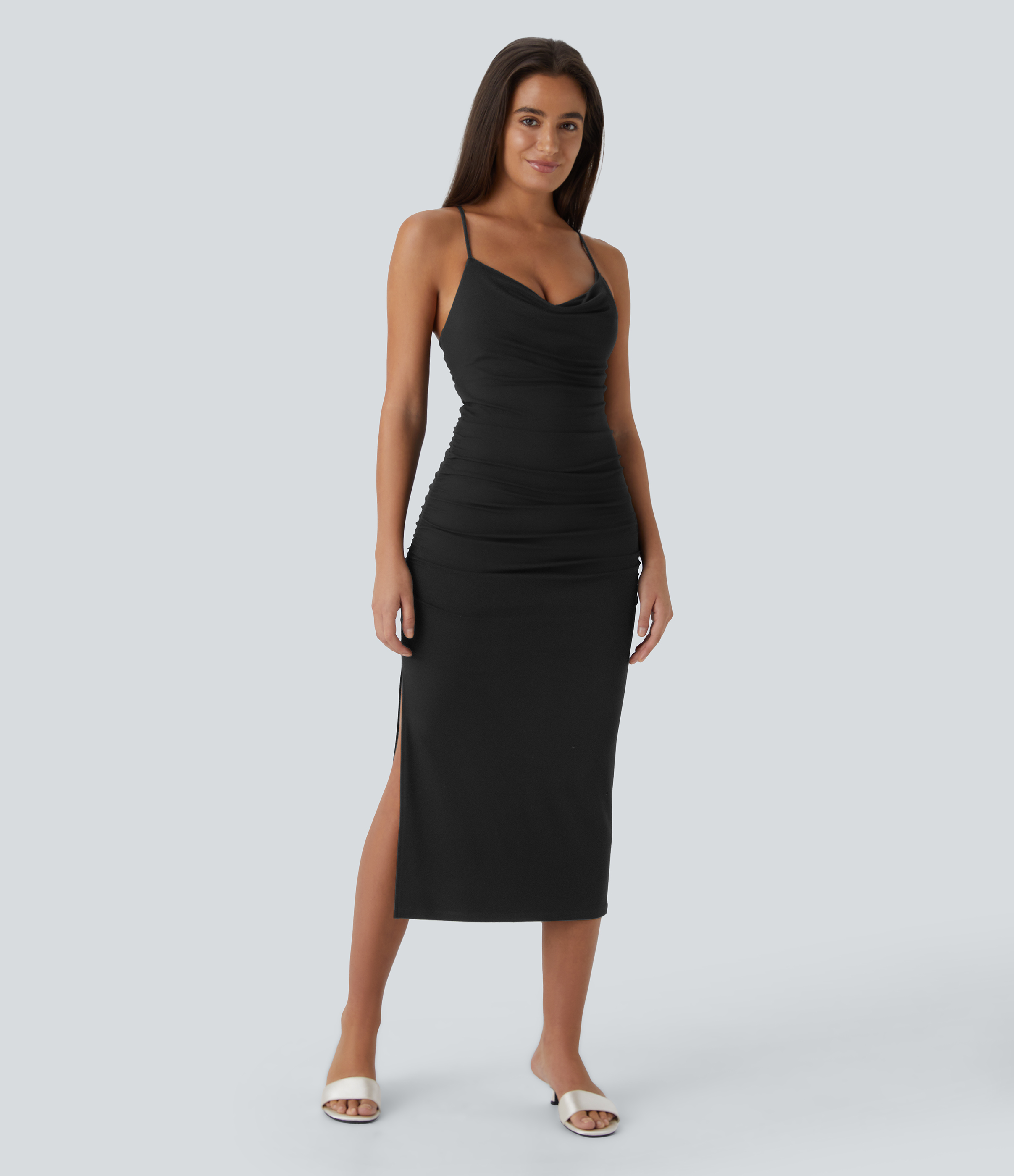 Halara Breezefulв„ў High Waisted Plicated Split Flowy Quick Dry Midi Resort Skirt - Black - XS(regular) Halara
