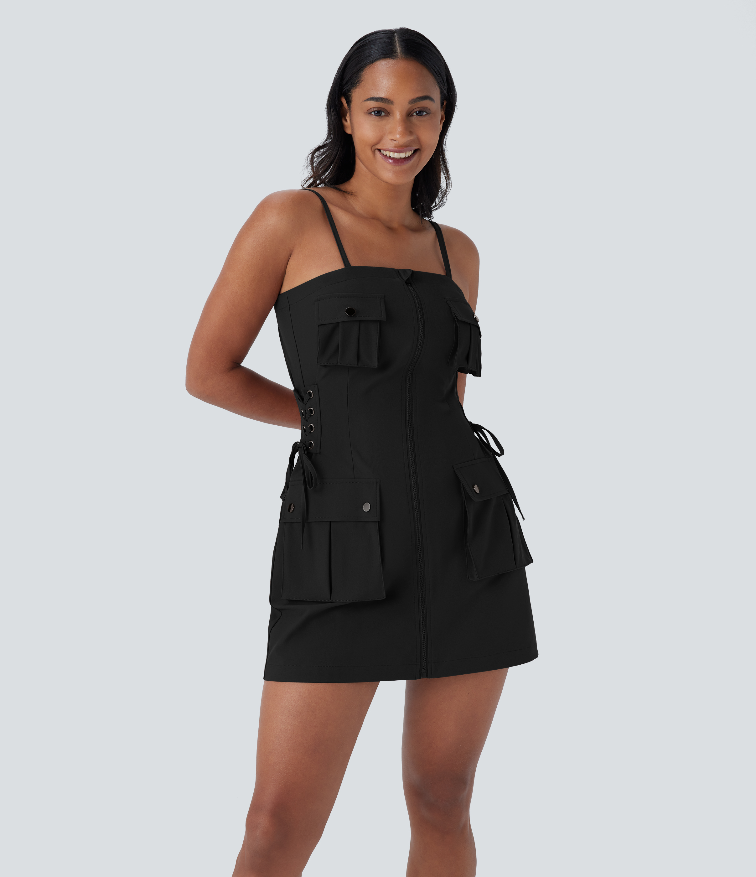 Halara Water Repellent High Waisted Zipper Multiple Pockets Ripstop Hiking Cargo Skort - Twilight Green - XS(regular) Halara