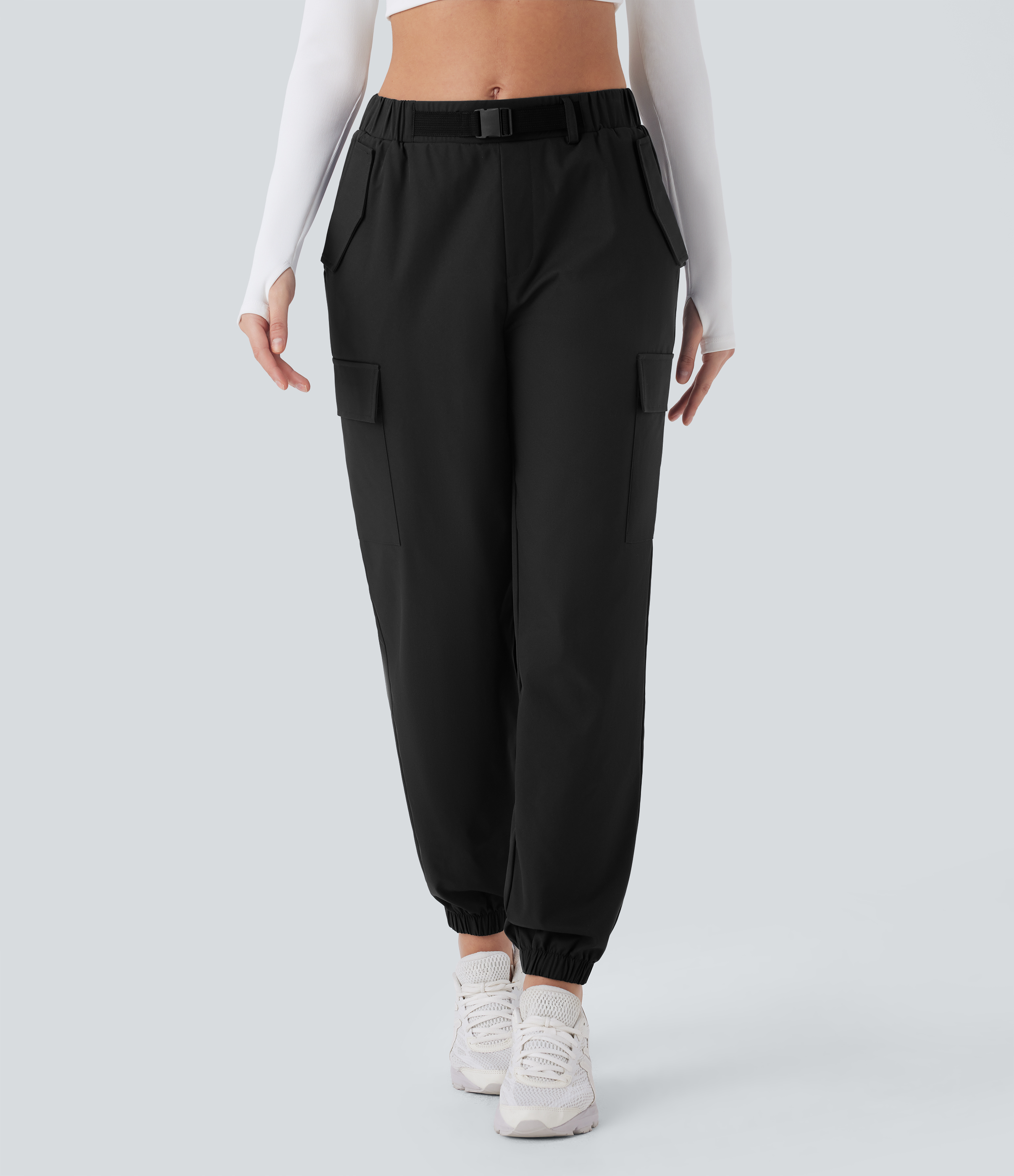 Halara Water Repellent Mid Rise Drawstring Multiple Pockets Ripstop Camping Cargo Joggers - Snow White Oak - M(regular) Halara