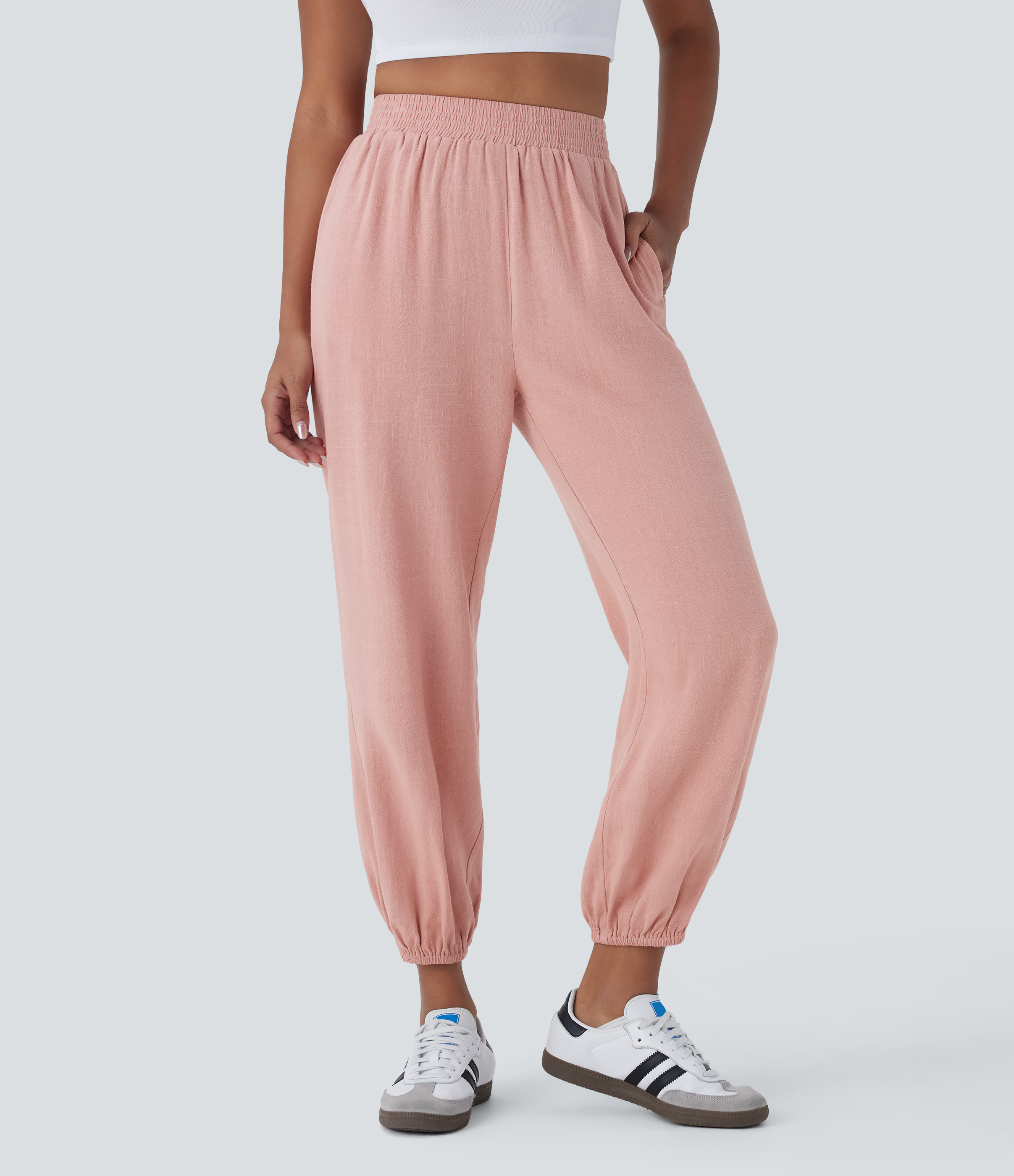 Halara High Waisted Side Pocket Linen-blend Casual Joggers - Mellow Rose - L(regular) Halara