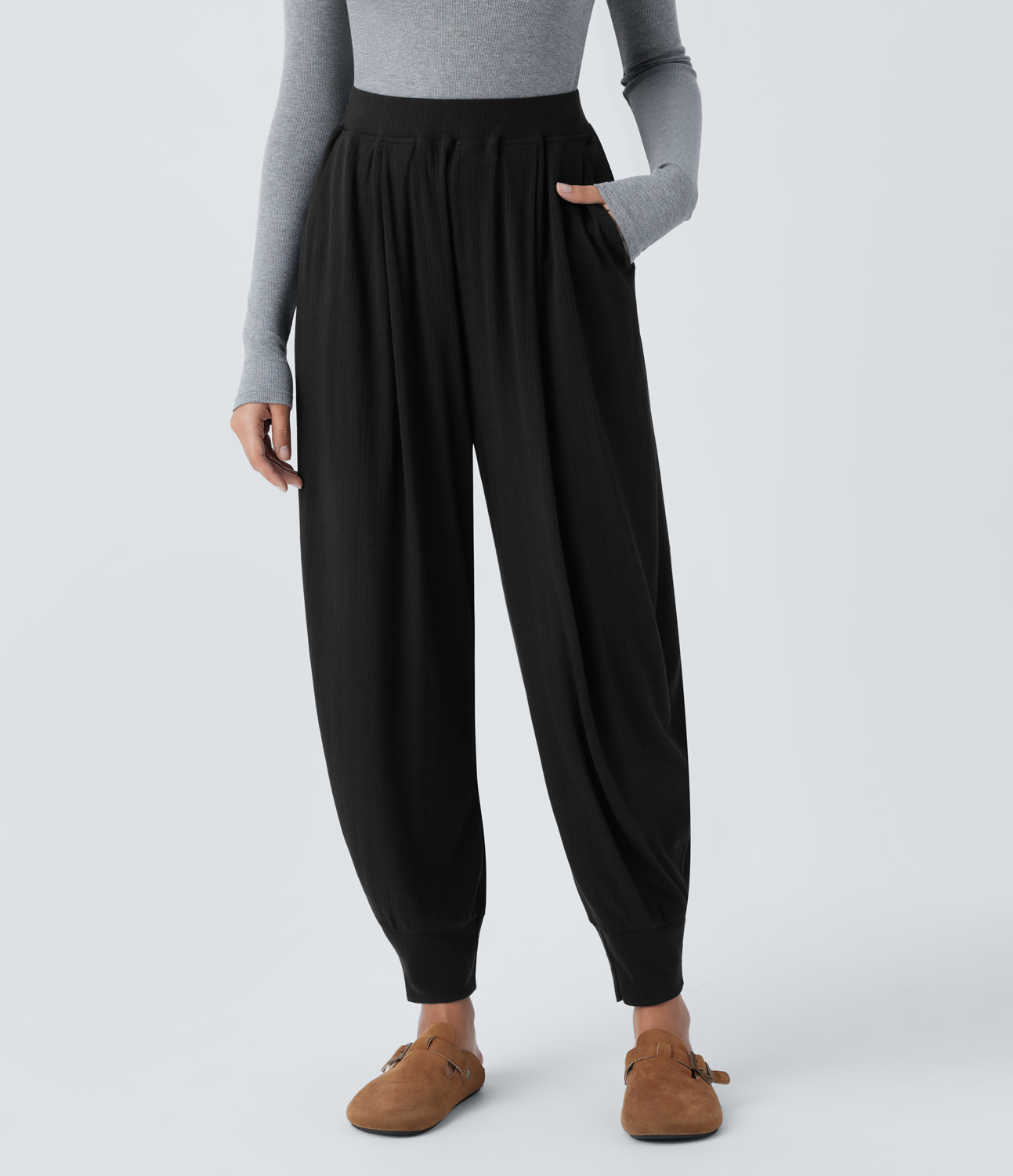 Halara Ribbed Knit High Waisted Plicated Side Pocket Casual Joggers - Black - S(regular) Halara