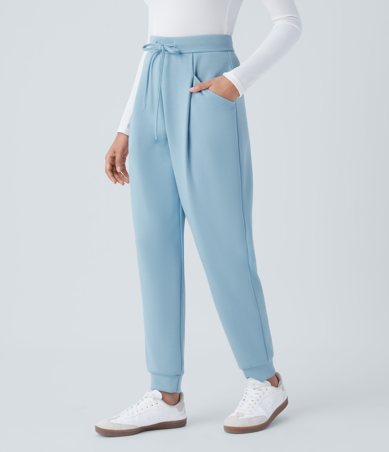 Halara High Waisted Drawstring Side Pocket Casual Joggers - Light Foggy Blue - XS(regular) Halara