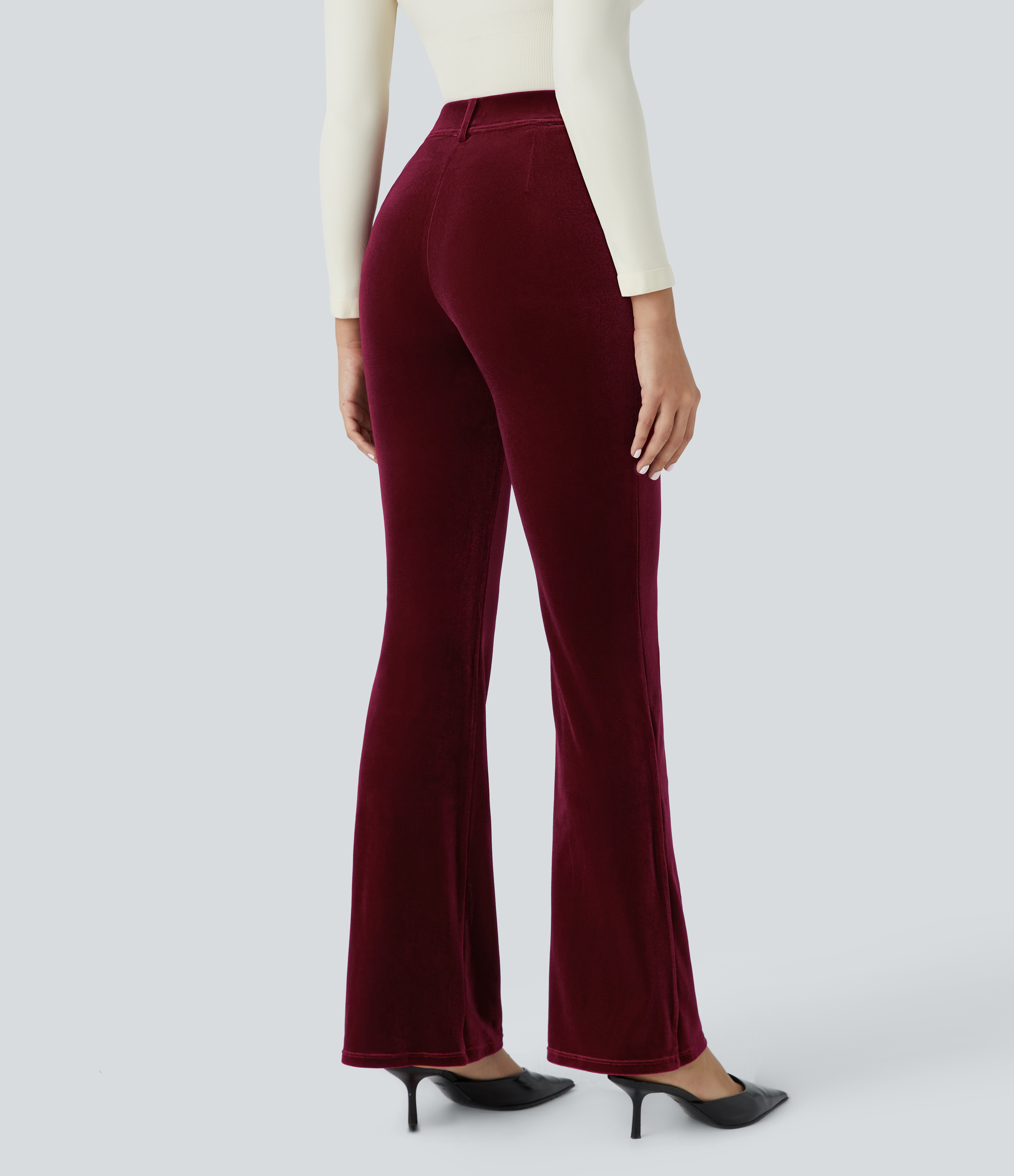 Halara UltraSculpt Mid Rise Tummy Control Side Pocket Running Full Length Flare Leggings - Mood Indigo - XS(regular) gym leggings Halara