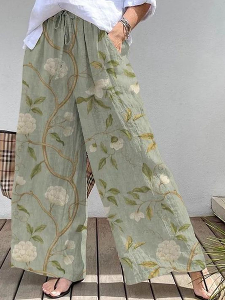 Women`s Trousers Wide Leg Pants Daily Going Out Vintage Leaf Spring/Fall Pants Pants JustFashionNow