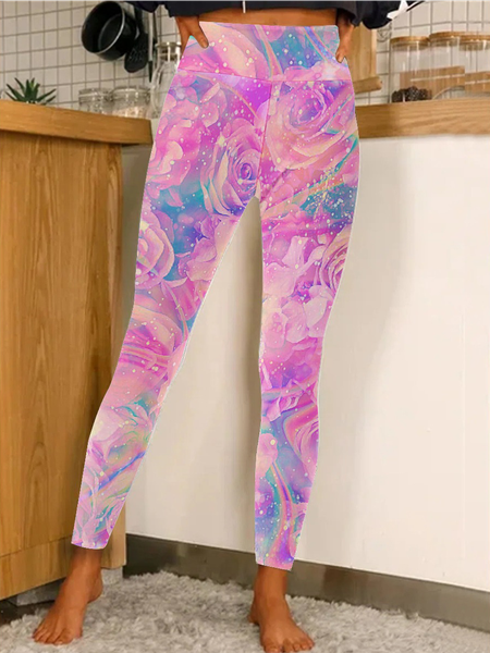 Women`s Casual Floral Spring Print Leggings Leggings Lilicloth