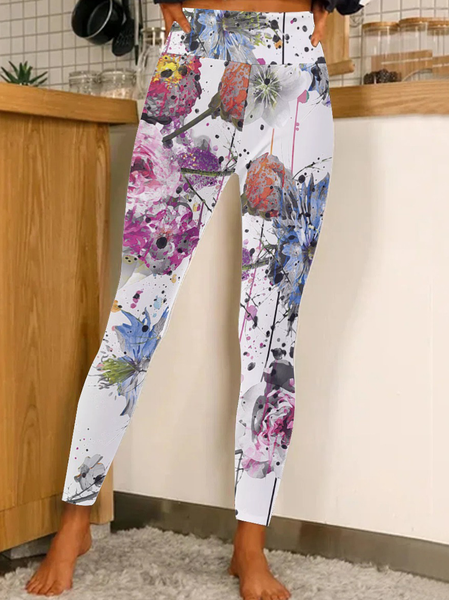 Jersey Casual Floral Leggings Leggings Lilicloth