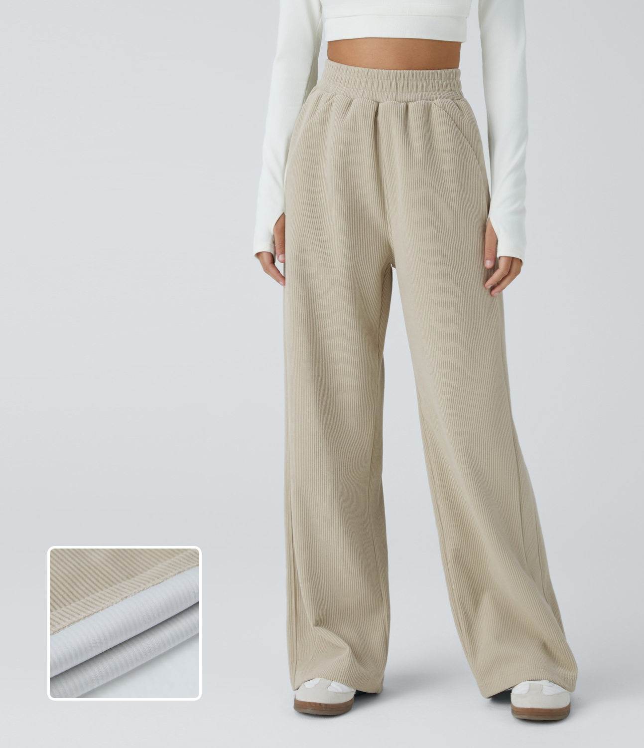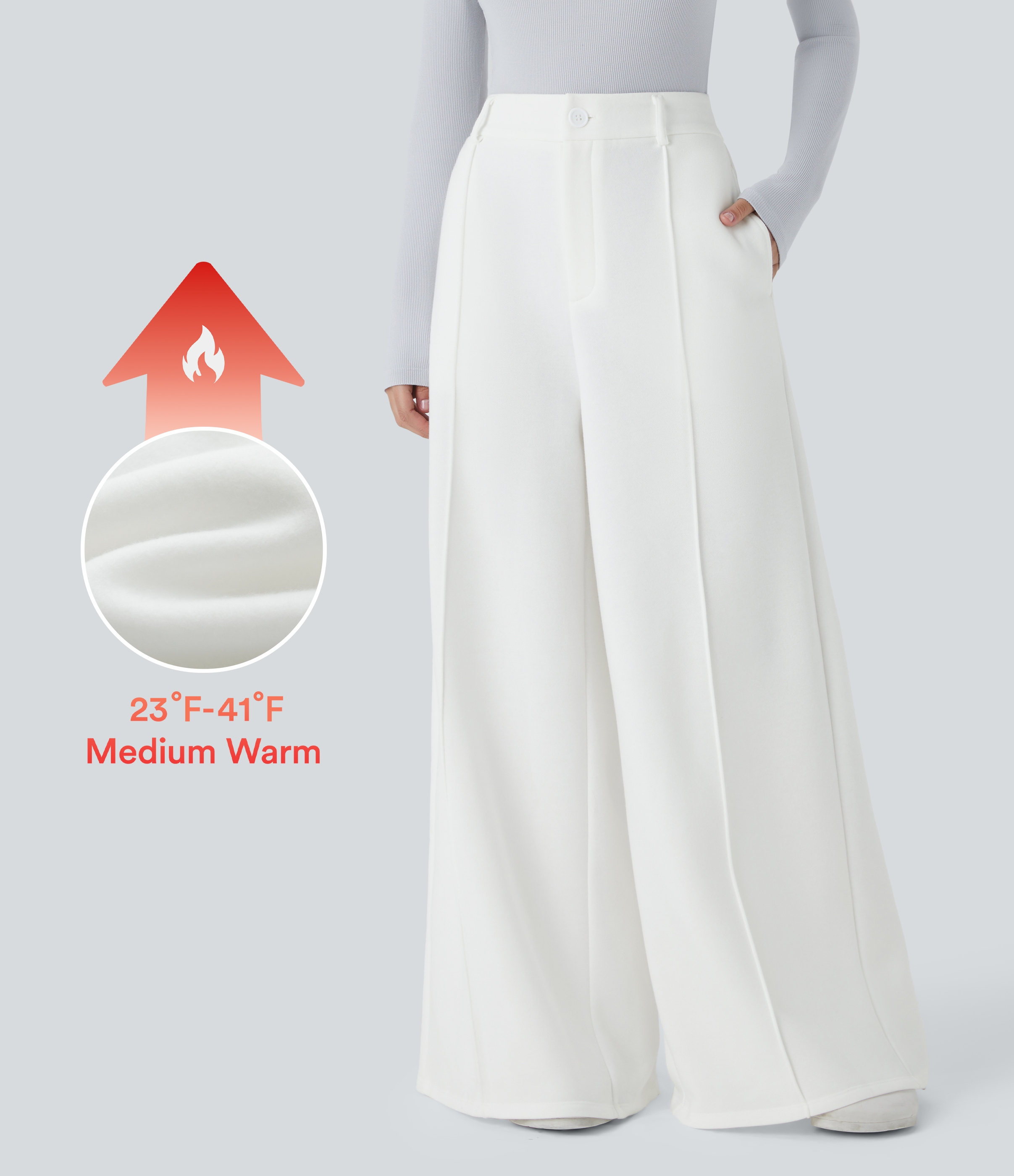 Halara Mid Rise Multiple Pockets Draped Wide Leg Fleece Casual Pants - Cocoa - L(regular) Halara